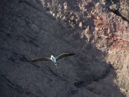 We continued our afternoon activity in Rabida Island with different activities, suitable for everyone. A group of kayakers were sent out first and they had a wonderful time exploring the coastline, which is covered with blue-footed boobies, marine iguanas, pelicans, finches, mocking birds, and soaring frigate birds. Along the same coastline we had deep-water snorkelers swimming next to white-tipped reef sharks, sea turtles, fish and Galapagos sea lions. During the last of the snorkeling, we observed dozens of garden eels along the sandy bottom; like real plants they showed us their long bodies and their big eyes.