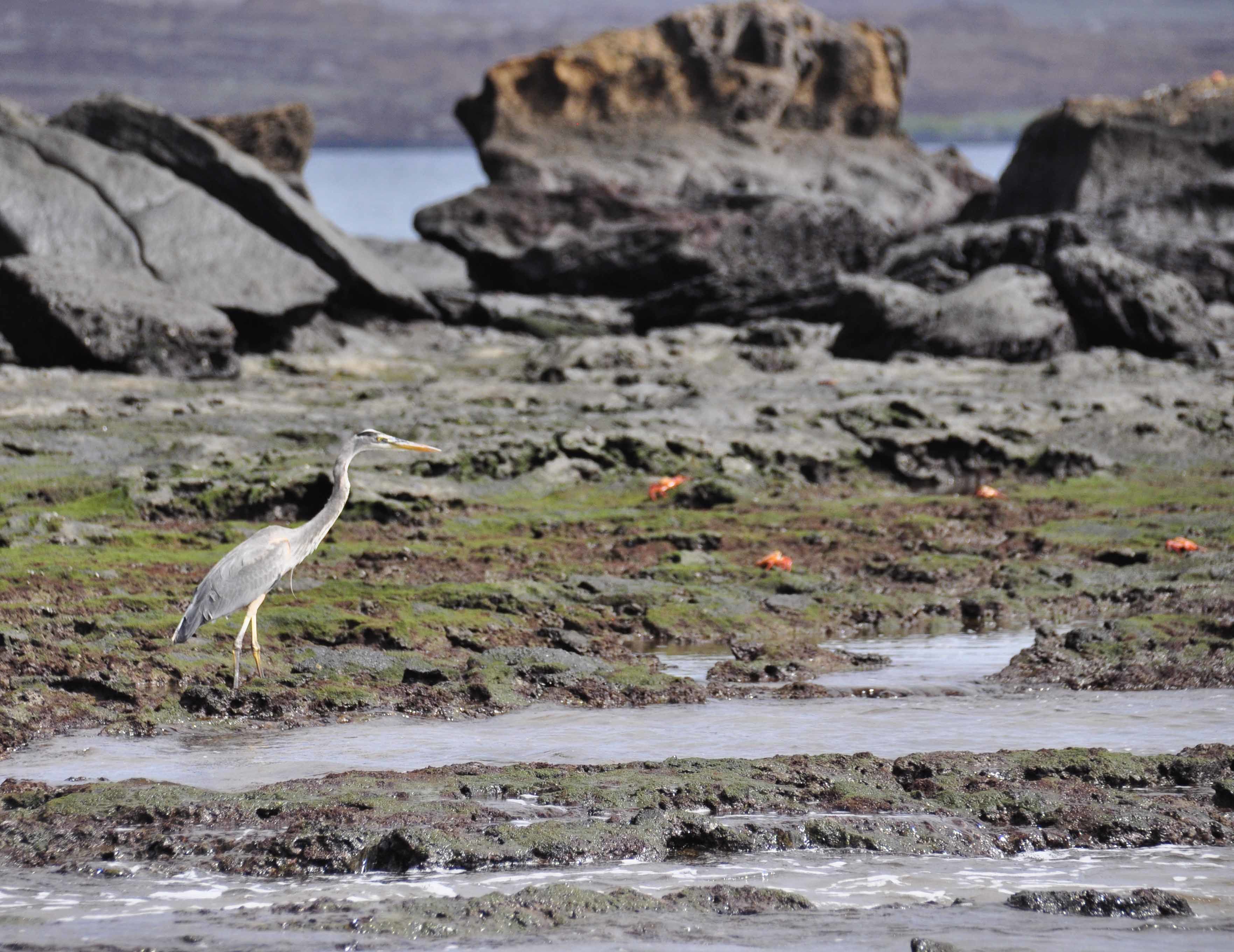 Relatively small and low compared to neighboring Santa Cruz, North Seymour is located to the north of Baltra. The island is dry with predominantly low shrubs, like prickly pear cacti. The incense trees are bare during the dry season. Seabirds like frigatebirds and blue-footed boobies nest on the island, and sea lions rest on the sand when they are not fishing. Land and marine iguanas also live here. Rabida is in the middle of the archipelago and has a striking red sand beach. We observed a small colony of sea lions of all ages resting or nursing. Behind the beach, American flamingos nest in a brackish lagoon. This island is full of contrasts and wildlife that we enjoyed observing during this day of expedition.