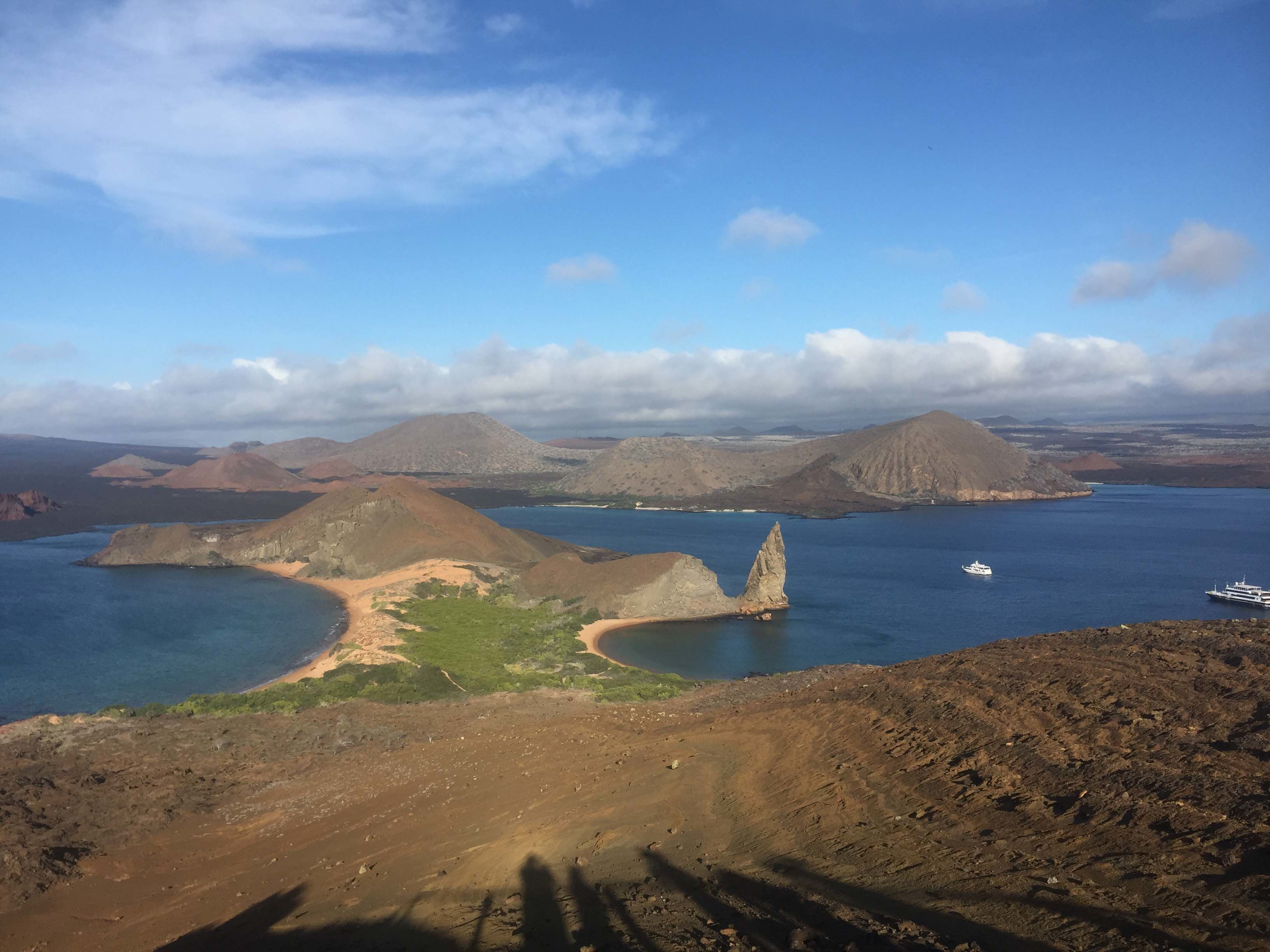 With the first beams of sun and soft winds, we headed to Bartolome with on a mission to reach the summit of the island, and enjoy one of the most spectacular views in the Galapagos. Compared to the main islands, Bartolome is quite small, but its geological formations are striking. At times, the landscape gives the impression of being on another planet such as mars, or the moon. The terrain’s appearance tells the story of how these oceanic islands were created. After breakfast, we continued our morning expedition with some snorkeling along the shallows, having a chance to observe whitetip reef sharks, stingrays, a great number of colorful fish such as burito grunts, dusky chubs and a huge school of black-striped salemas.