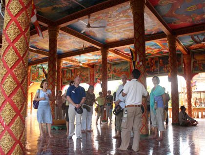 In the afternoon, the National Geographic Endeavour dropped anchor just in front of Sombrero Chino Island, otherwise known as Chinese Hat. Our first outing in the afternoon was snorkeling along the channel that separates the islands of Santiago and Chinese Hat. White-tipped reef sharks and eagle rays swimming indifferently close to us were a big attraction. We were drifted by the currents, observing many different species of colorful fish such as king angel fish, salemas, parrot fish and some sting rays hiding under the sandy floor.