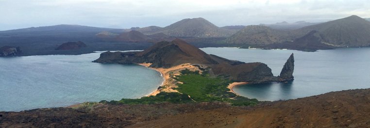 In the early hours of the day, we started our first walk of the day on Bartolomé Island; this is one of the best places to learn about the geology of the archipelago. On our way up to the summit, we observed the orange rusty lava flows, the large spatter cones, several small lava tubes and also some of the plants that colonized these volcanic features long ago. At the end of our walk and right from the top of an old cinder cone, we took a moment to enjoy the most famous view of Galapagos. After this hike, we returned aboard to have breakfast and to get ready to go deep water snorkeling while others went to a nearby beach, or went for a ride on our glass bottom boat.