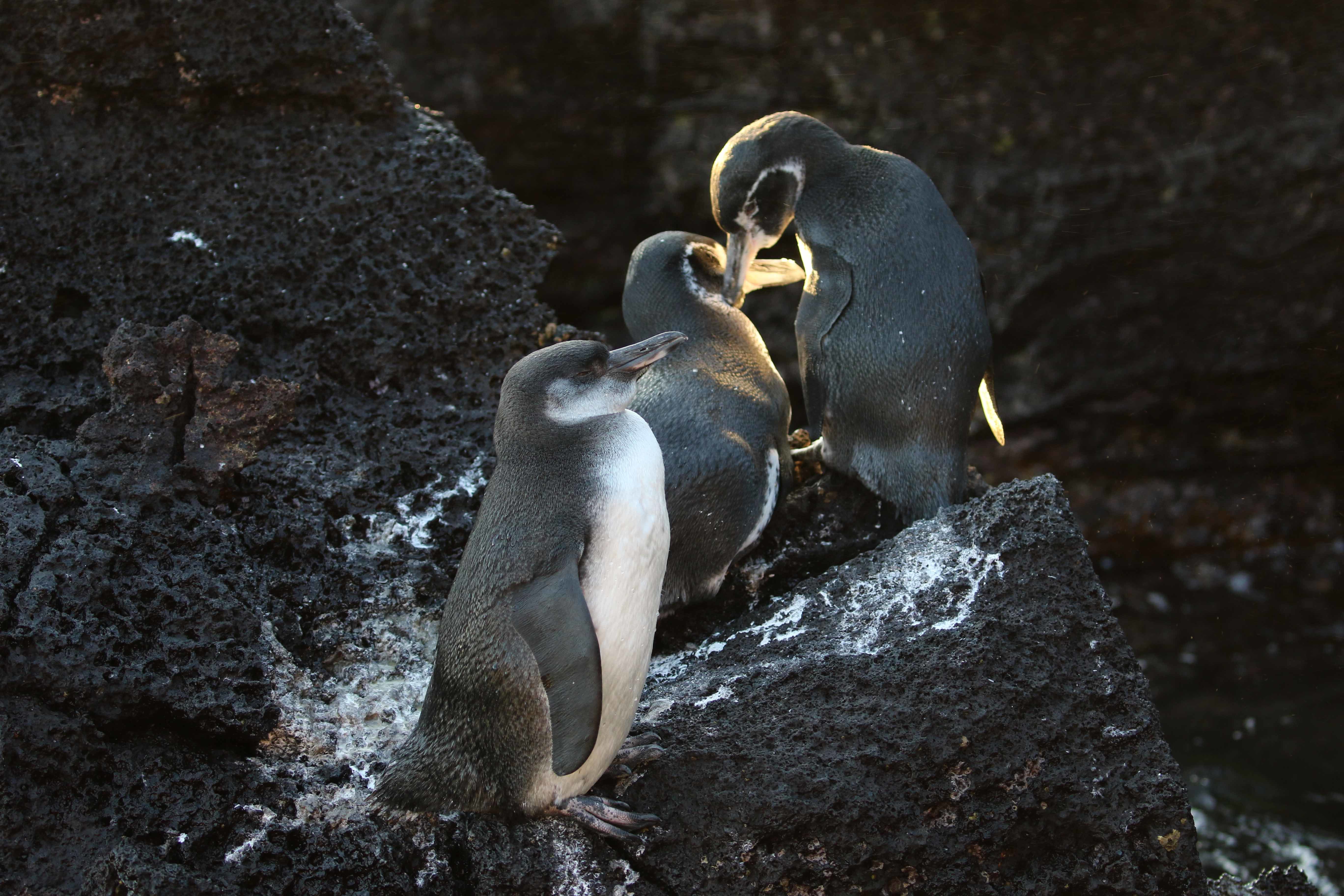 Back to the ship for a Mexican lunch, the food was amazing: Tacos, enchiladas, burritos, different salads, excellent desserts and super tasty margaritas filled us up with lots of energy for the afternoon activities. We started with a presentation on Charles Darwin in the lounge, followed by a second round of snorkeling, a sketching class in Sombrero Chinos Beach, and Zodiac rides all along the coast of Santiago Island, where we looked for penguins and found a small colony resting on the lava rocks. Sea lions were also around, some juveniles interacting with the Zodiacs, and in the background, a stunning orange sunset.