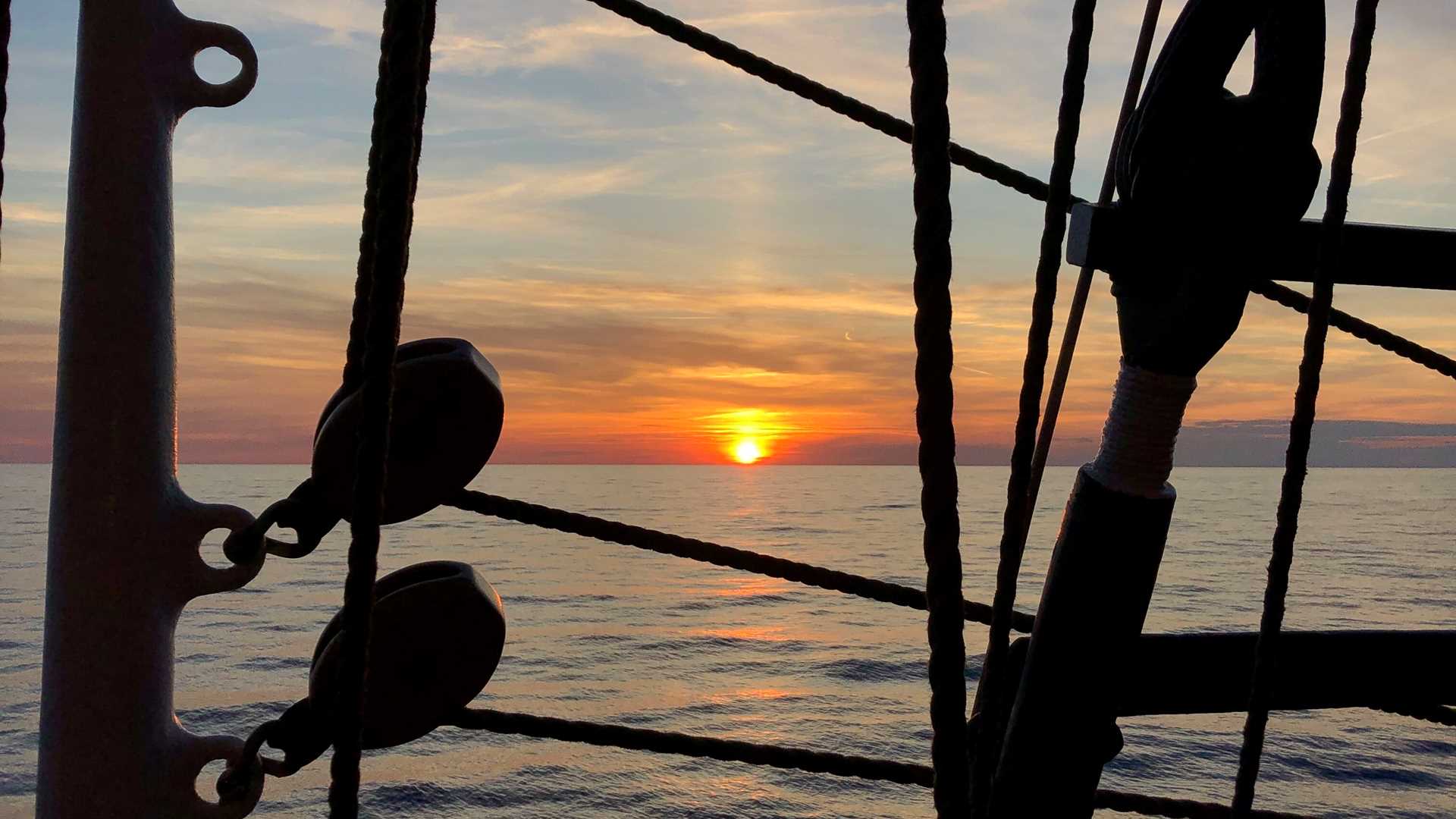 We awoke to near-flat calm seas this morning, with cirrus clouds catching the colors of another gorgeous Mediterranean sunrise. The seas remained calm enough for the captain and crew to set the full sails, creating a stunning opportunity for us to experience a photo safari. The quiet seas also allowed for tours in the engine room, a unique time capsule.