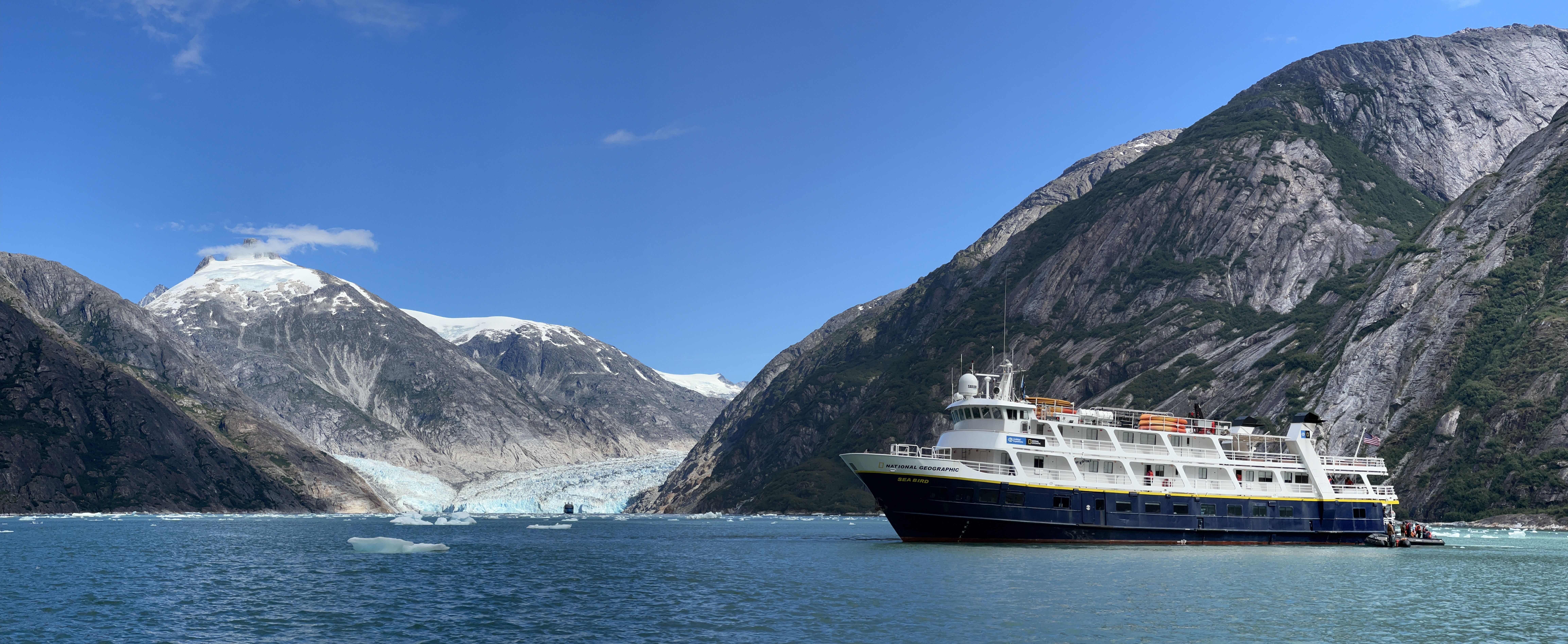 The conclusion of James’ lecture came just before lunch. After lunch, archeologist Natasha Slobodina led two separate groups of guests on guided tours of the curated art exhibit on board National Geographic Endurance. A little later in the afternoon, geologist Joe Holladay gave a lecture on the geology and glaciology of Alaska. The day concluded with clearing skies. As we sailed eastward along the coast of Alaska, the coastal Brooks Range peaks, still snowcapped, made for a wonderful salute to our pending departure of Alaskan waters.