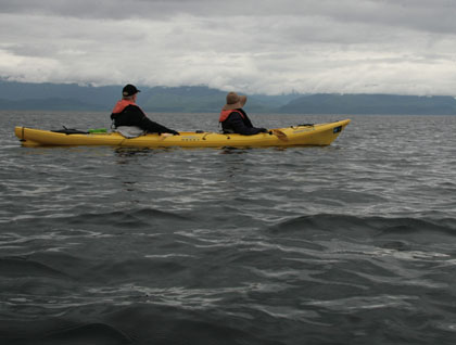 After a good breakfast and a kayak briefing, medium and short hikes or an optional Zodiac cruise were offered. Some guests climbed steep hills onto a plateau with spectacular views while others walked the flat tundra. A little group of Svalbard reindeer seemed curious and showed up very close to some of the hikers. This location has very sparse vegetation, and we noticed reindeer feeding on the purple saxifrages that have just started to bloom, mostly in small patches on moraine material dominated by rounded stones and pebbles. The Svalbard reindeer is a subspecies of the reindeer on mainland Norway and is prone to eat almost anything that has leaves or roots. During the winter the reindeer are confined to feed on dry grasses and lichens, all with a very low nutrient value. However, thanks to a thick layer of fat that is built through intensive grazing during the short Arctic summer, most of the population manages to survive the harsh winter climate. The mortality rate through the winter is sometimes quite high, and we came across remains of reindeer that had found their last resting place on the windswept tundra (see photo). During the hike we spotted a great number of barnacle geese and a few pink-footed geese, some feeding on the flat wetlands while others were nesting on the cliffs. A few of the guests were also fortunate to spot an arctic fox running up and down the slopes hunting for food.