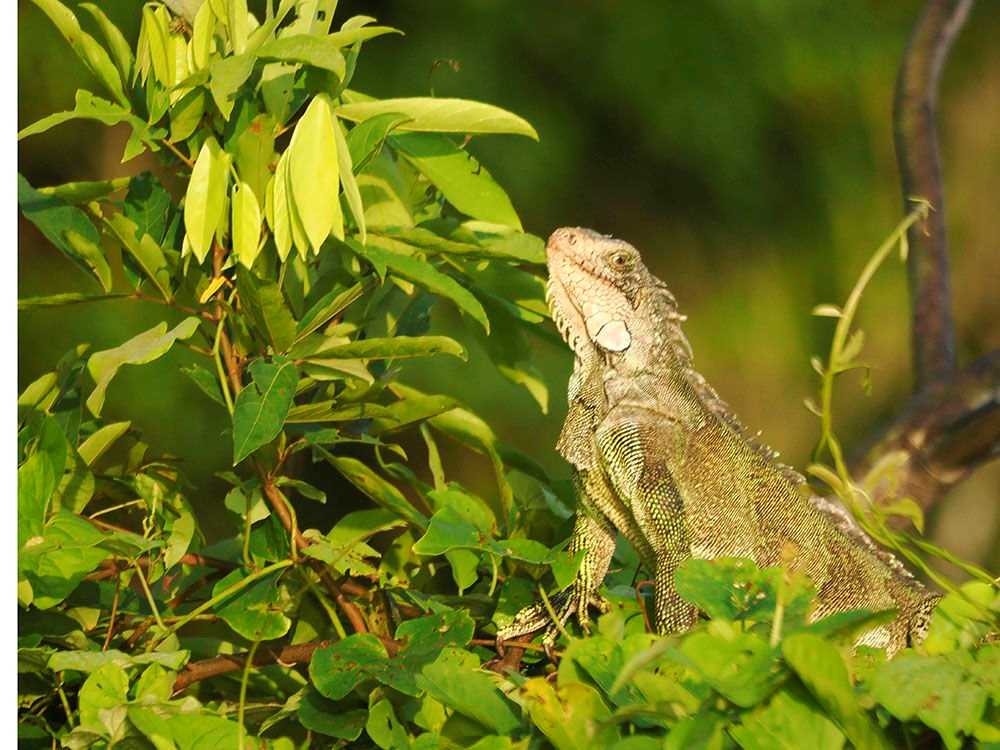 This morning before breakfast we explored Belluda Creek, a tributary of the Ucayali River. The moment we boarded the skiffs we had our first encounter with the wildlife in this area. A few feet from the shore we spotted a green iguana on a small bush, basking in the first sunlight of the morning to warm up and start its day. Shortly afterwards we observed some toucans on a tall tree, singing and flying above us.