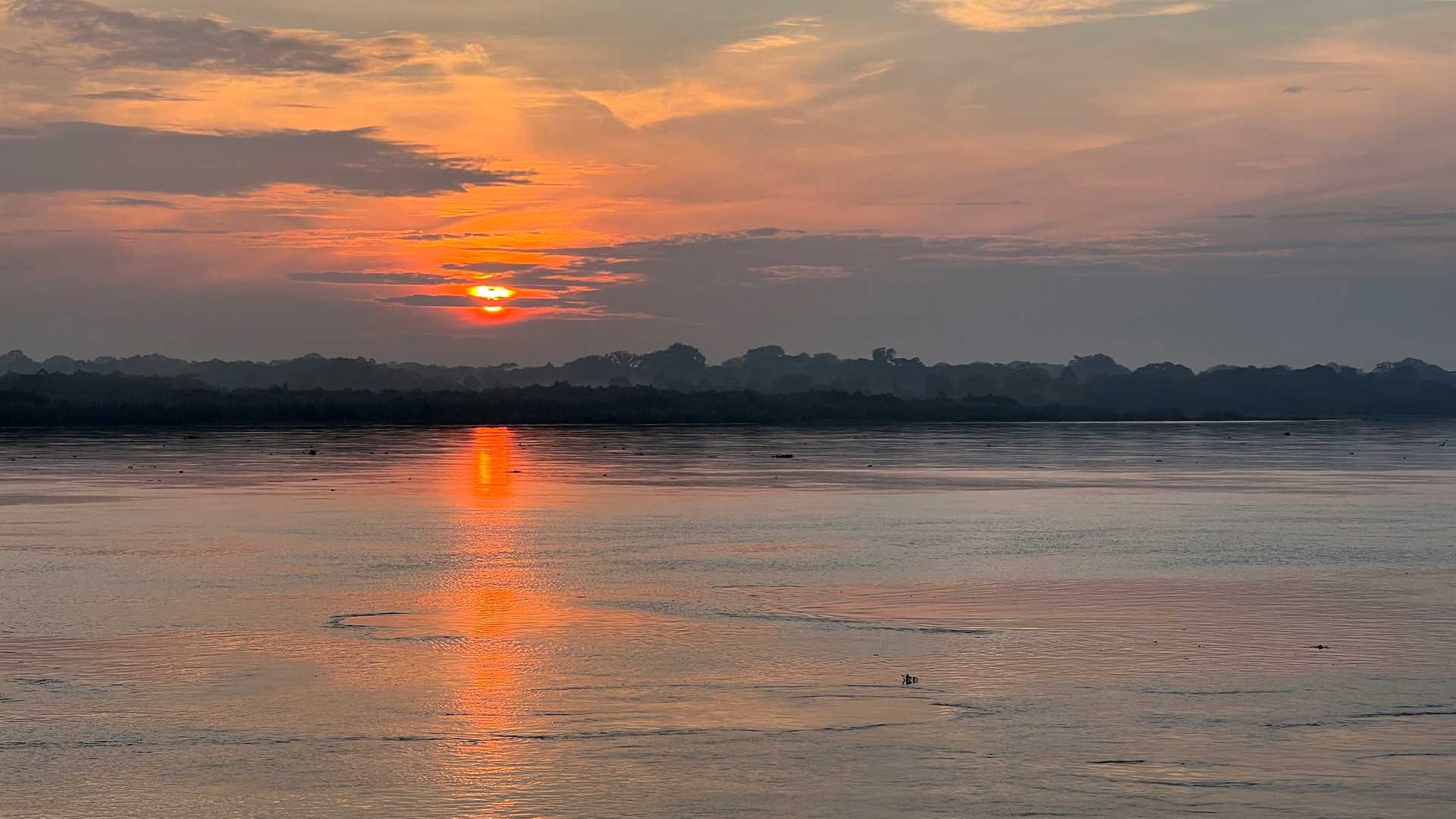 For our afternoon activity, we visited Dorado River. At the mouth of the river a pod of pink dolphins welcomed us as they hunted for their food. We went on the skiff to explore the river until sunset. As the sun began to set, the nocturnal wildlife began to show up.