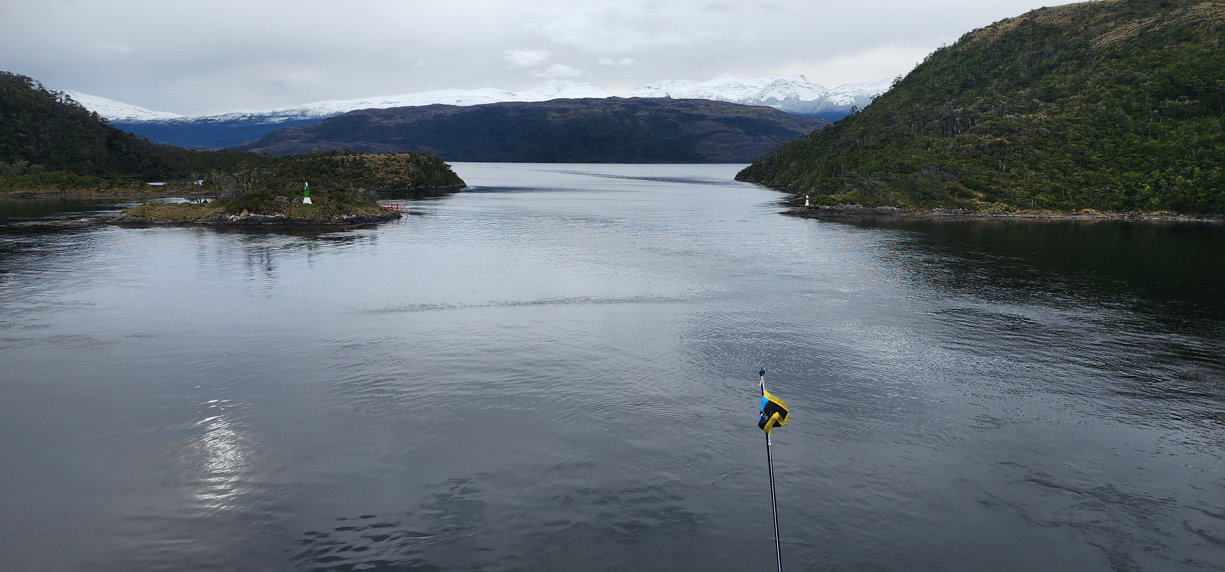 After lunch, a few sea lions and pods of Peale’s dolphins entertained us as we awaited a short window of time when the tide was still high enough to allow the captain of National Geographic Resolution to swiftly maneuver through the Kirke Narrows.