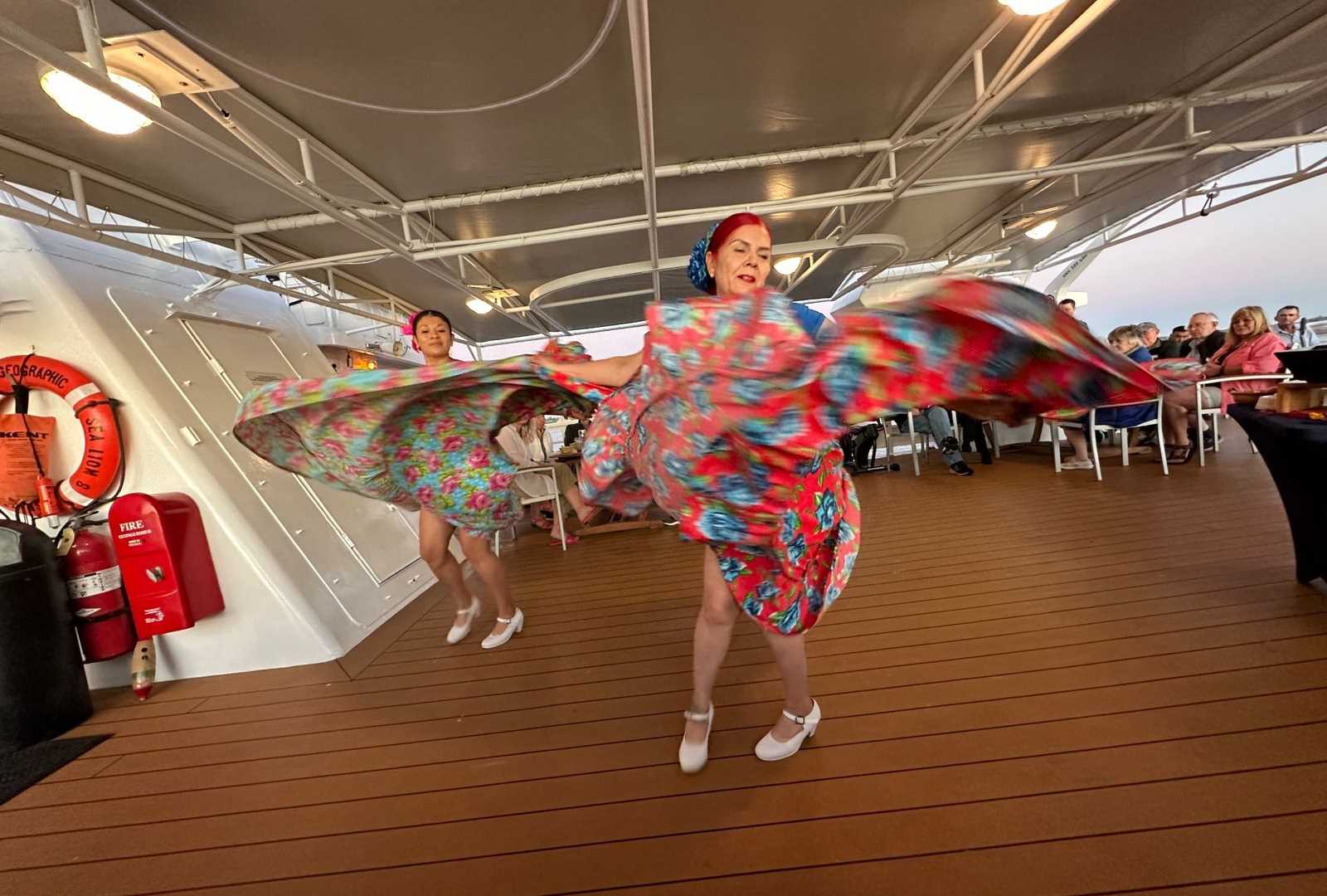 During sunset time our guests enjoyed cocktail hour on the sundeck with live music from local musicians Los Coyotes, and great dancing from Las Flores del Desierto Duet. We danced, we laughed, and we clapped. We finished our day in the north end of Magdalena Bay with a great dinner buffet and some more live music from Los Coyotes.