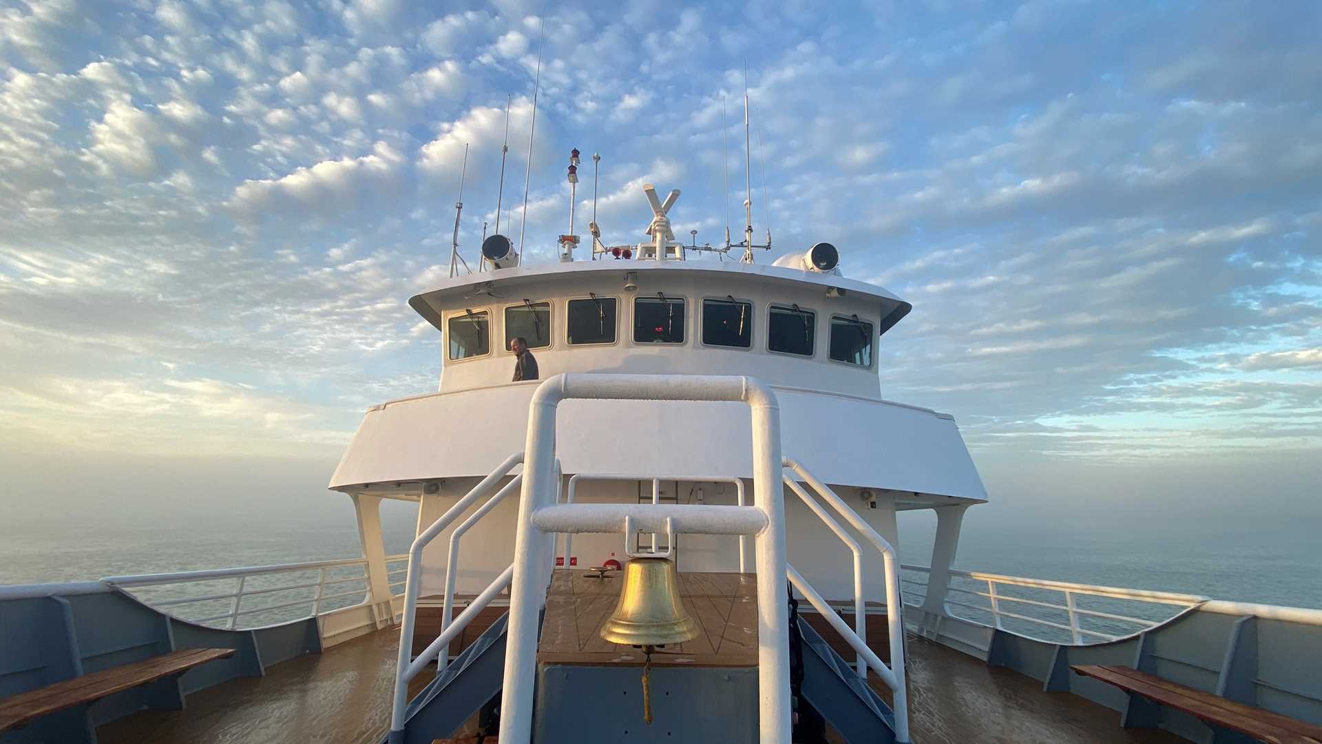 A blanket of marine fog surrounded the anchored ship at first light. Between the melodic songs of meadowlarks, the distant exhales of gray whales could be heard in the direction of the Boca de Soledad. We’d spend the morning in the boca, where the Pacific penetrates through sandy barrier islands and into sheltered lagoons. In the boca, we were rewarded with countless whale sightings and we watched as the whales played, surfing the swells.