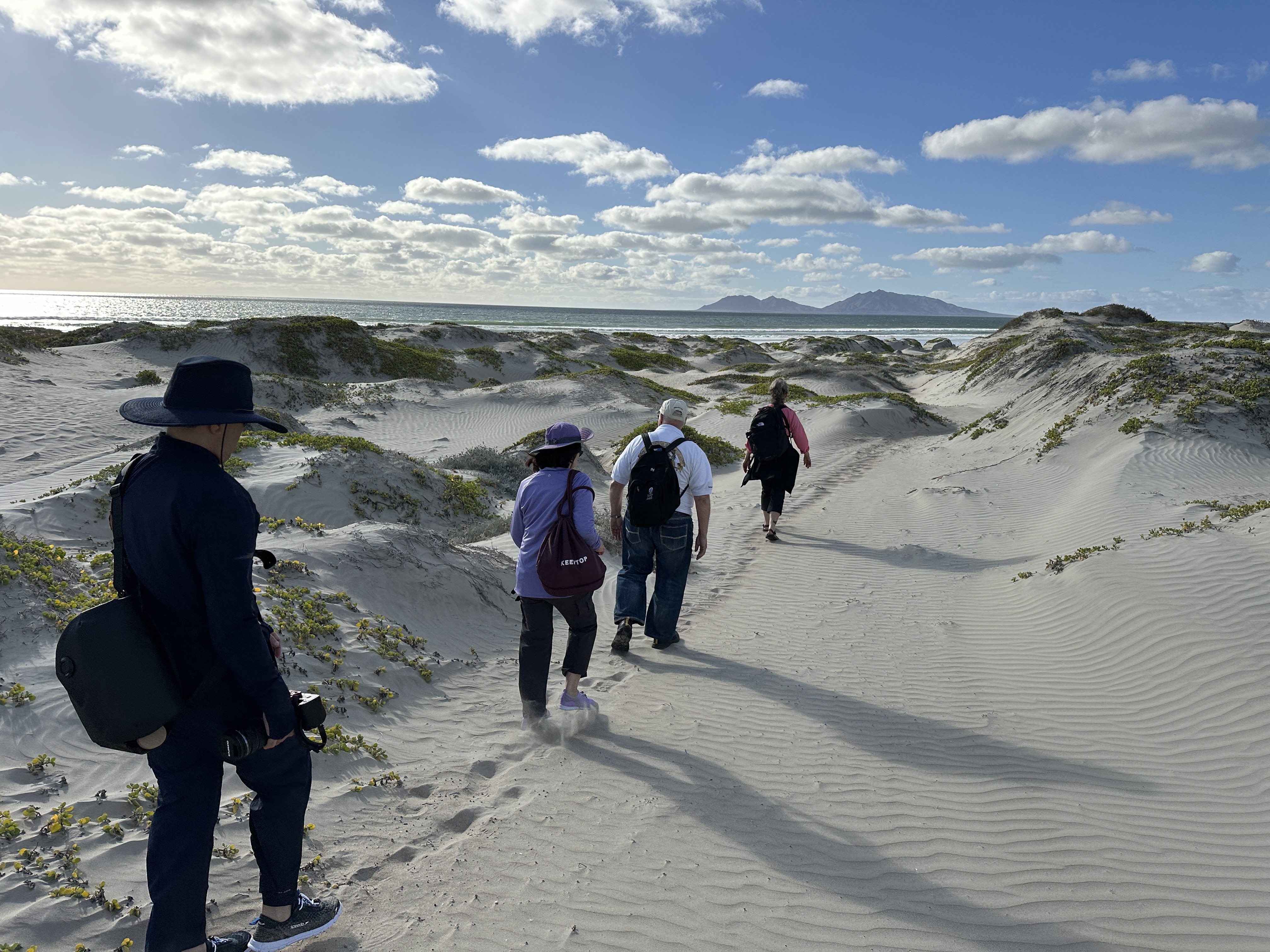 In the afternoon, we experienced the wonders of the sand dunes of Bahia Santa Maria: crossing the dunes, shell middens, and the incredible desert plants en route to the Pacific Ocean. With the dropping sun, we witnessed incredible shadows across the barchan dunes. Towards the end of our sojourn, we made it to the Pacific Ocean which greeted us with an endless amount of sand dollars strewn about the beach. The landscape was reminiscent of the classic film Lawrence of Arabia, and truly was an unexpected gift of the Baja peninsula. This landscape never fails to impress!