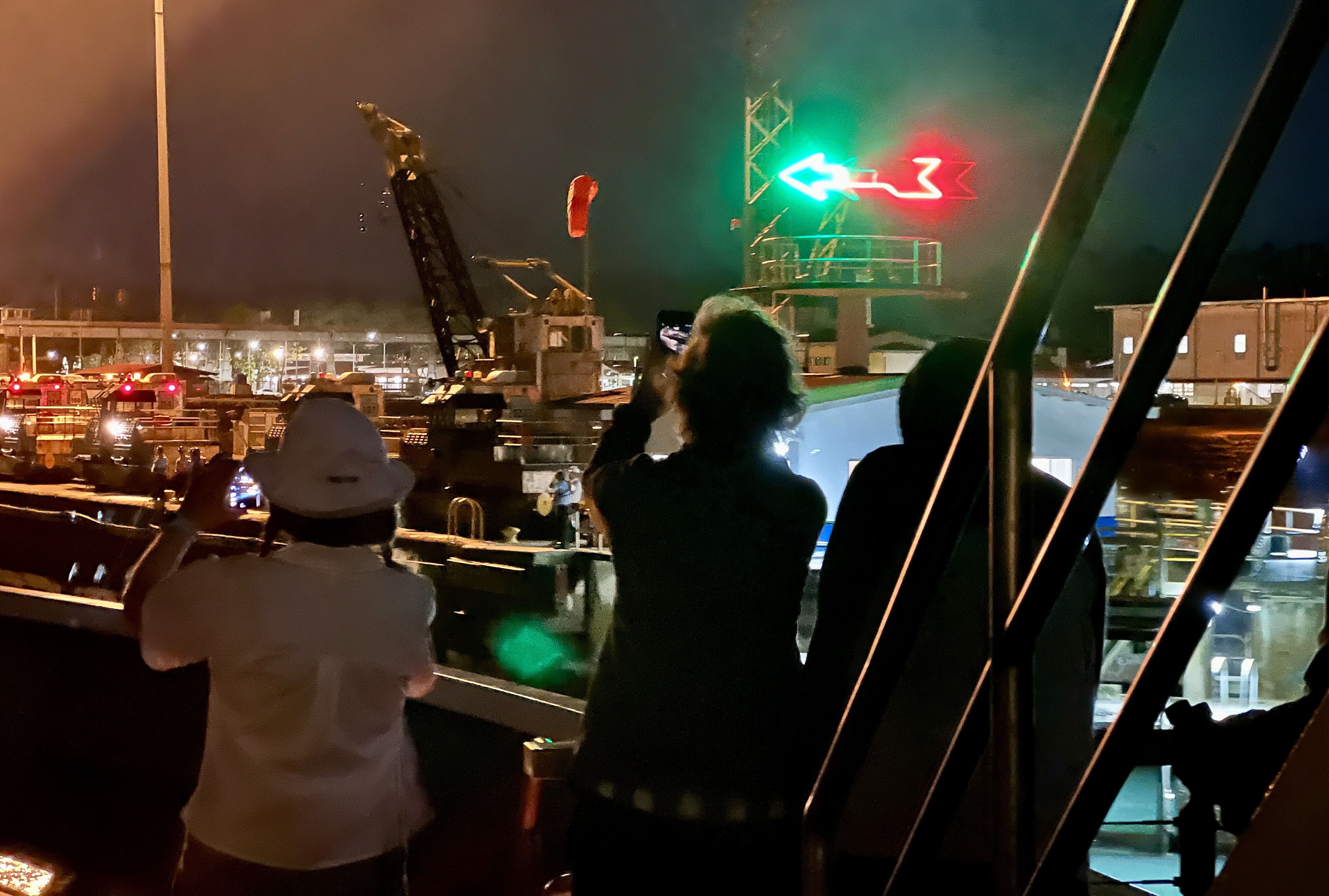 In the late afternoon, we started our crossing of the canal. First we entered the Miraflores Locks, composed of two chambers that lifted us up to Miraflores Lake. Next was the Pedro Miguel Lock, and then finally the famous Culebra Cut, the narrowest part of the canal.