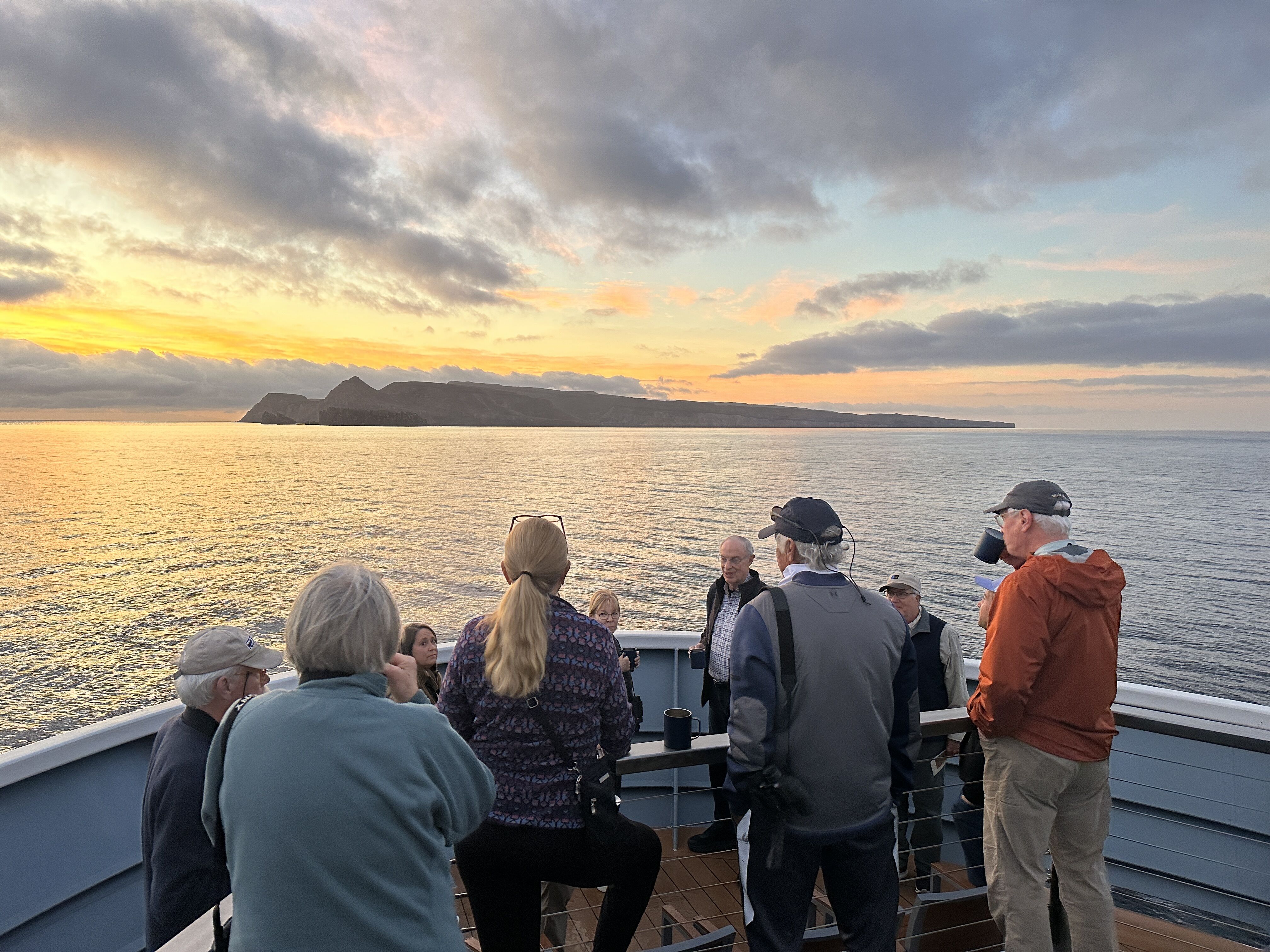 Once back on the ship, we enjoyed a wonderful Filipino dinner buffet before we headed out again. Yes, you read that correctly. We headed out again after dinner. Just as the sun was setting below the horizon, we boarded Zodiacs to explore the area around the Danger Islands. And what an adventure it was. Just getting into the Zodiacs proved a challenge due to high ocean swell, but it was totally worth it. Incredible blue, orange, purple, and pink colors filled the evening sky, and the tabular icebergs gloomed in magical white light as we cruised around them. What a spectacular experience. Getting back on the ship was yet another adventure, climbing back on via the stern. Another drink and snack in the ice lounge, and we collapsed in our beds with dreams filled with ice and magical light. Welcome to Antarctica!