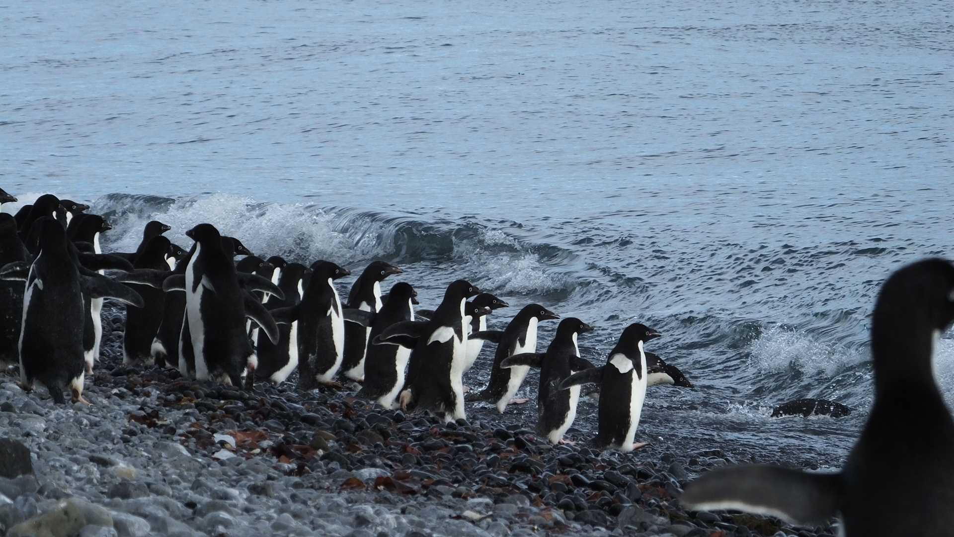 After a pleasant overnight crossing of the Bransfield Strait, National Geographic Explorer cruised into the Antarctic Sound at breakfast time. The anchor was dropped and the scouting team went ashore to assess the landing site. Half of the group went ashore, while the other half attended a presentation about the Swedish Expedition of 1901, then the groups changed over. The shore party saw a very large colony of Adelie penguins, as well as a smaller colony of gentoos. Also seen were the associated predators, skuas and giant petrels.