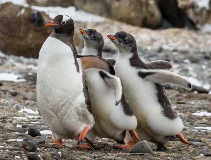 What is a parent to do? Imagine the dilemma; you return from sea looking and calling for your own chick to feed, but your little pride and joy has joined a group of other independent chicks who now roam freely without parental guidance all over the beach. In biological terms your offspring have begun to crèche, staying with other chicks for safety. Your calls bring several chicks running, but often not your own. How to make sure that the precious meal you worked so hard to obtain isn’t going to the wrong beak? You do what any good parent would do; you run! Run fast and run far, the chicks will follow and those that give up the chase are not your own, your own will stick to you, quite literally. Only when you are satisfied that the chicks trying to knock you over are yours do you stop and dole out a meal. A necessary strategy for penguin parents, but one of the most comical of penguin behaviors we humans are privileged to observe!