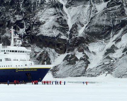 By 10:30 a.m. everyone willing and able took their first steps onto the NE extremity of the peninsula and cavorted with the Antarctic’s other ice-loving biped, the Adelie penguin. This took place at a site called Brown Bluff, known for its nesting snow petrels, kelp gulls, Adelie and gentoo penguins and the stunning backdrop of solidified ash deposits that give the location its reddish-brown hue and subsequent moniker.