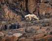 This morning, an early announcement woke everyone with news of a very pleasant surprise: narwhals! Several groups of the mythical cetaceans swam alongside National Geographic Endurance. We spotted them along both shorelines of the Buchan Gulf on the eastern side of Baffin Island. We all enjoyed observing them from a distance. Later, some kayakers had a chance to see them a bit closer. Meanwhile, adventurous hikers found caribou antlers ashore while learning about the ecology of the Arctic. Long hikers also had unique encounters, including an opportunity to admire a snowy owl! Most of us had the chance to investigate the carcass of a young narwhal on the beach. Hikes in the afternoon allowed us to learn more about the tundra. We visited the remains of some old Inuit winter hunting camps, rounding out a great day exploring the Canadian Arctic.