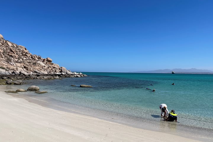 After breakfast we snorkeled inside the national park, swimming with horse-eyed jacks, a curious hawksbill turtle, and a myriad of colorful reef fish on one of the northernmost coral reefs in the northern hemisphere. Throughout the morning humpback whales came and went, offering us looks at their lives here in their breeding and calving grounds.