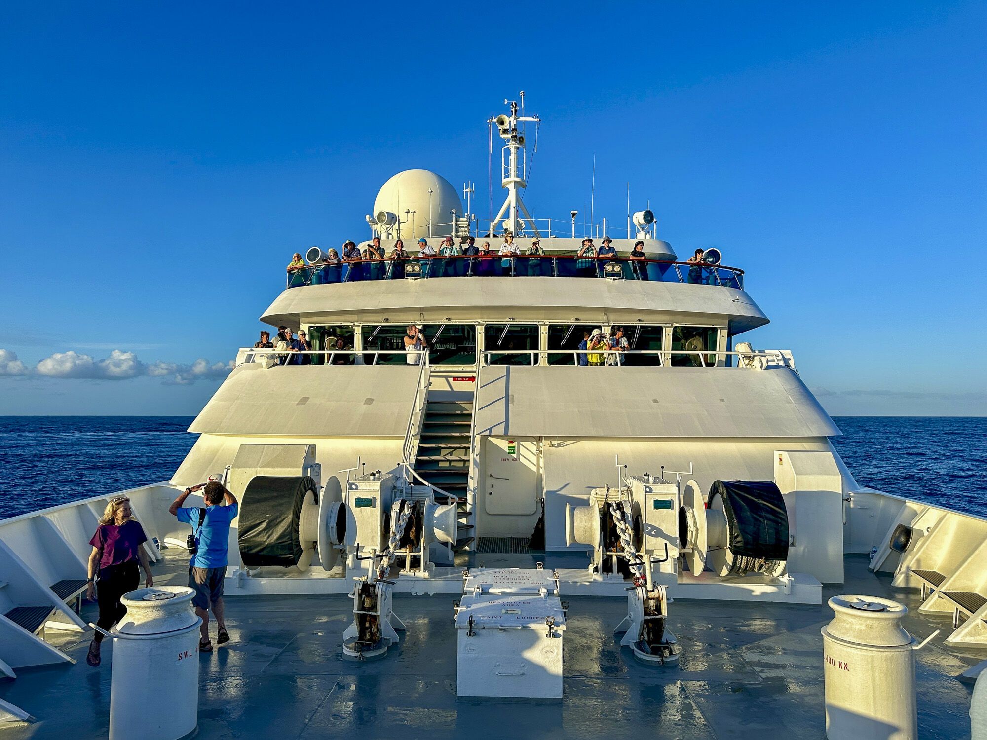 Sea Cloud sailed as soon as all were aboard, and we set out for the southwest cape of Sardinia. It was a beautiful evening of sailing, with a clear and colorful sunset as we enjoyed Sea Cloud’s BBQ buffet dinner on the lido deck, featuring a fresh whole yellowfin tuna and local Sardinian delicacies.