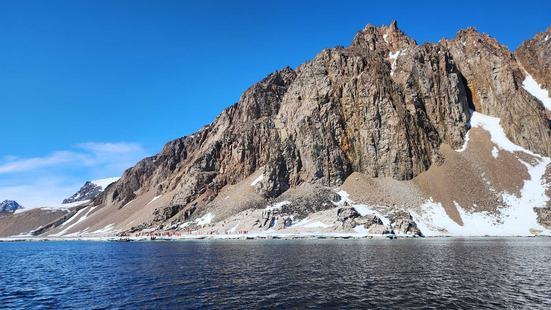 The sounding boat was dropped, and the staff captain and navigational officer went to assess the bathymetry of the bay. To everyone’s delight, there was enough water to bring the ship into the bay, where there were incredible towering icebergs radiating the deepest of blue. This bay also led to a granite shore that is part of the continent of Antarctica, so those hoping to touch foot on solid Antarctic ground were fortunate to do so.