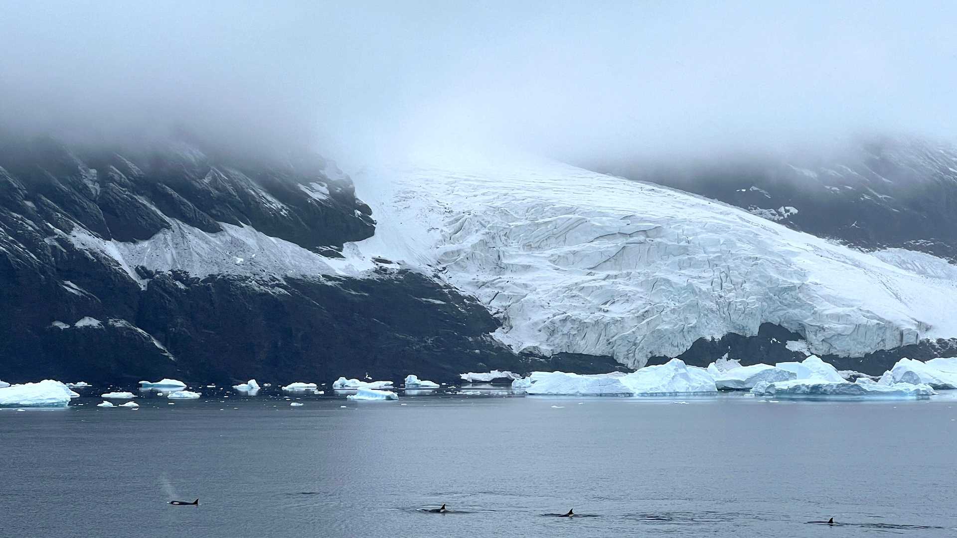 Like all good days of exploration, our morning started well before breakfast with a sighting of B2 killer whales, followed by a change of plans due to ice conditions at our desired landing. Quickly pivoting, the staff team scouted a new-to-Lindblad hiking location at Cape Bird, the southernmost point of the Tabarin Peninsula. Excited for an official continental landing, we meandered over black and red volcanic debris to reach the edge of a glacier and examined small marine creatures stranded on the beach by the last high tide.