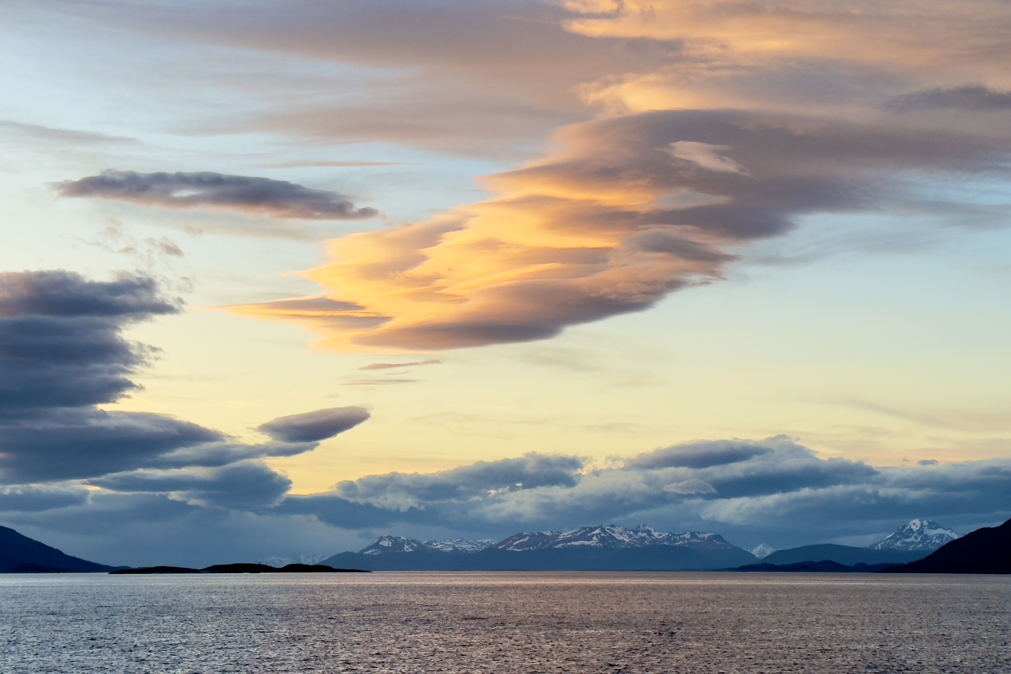 Shortly after sunrise, coffee in hand, I made my way to the bridge. A pretty sunrise greeted me with the islands of Cape Horn visible over 50 miles away. I knew it would be a nice day.