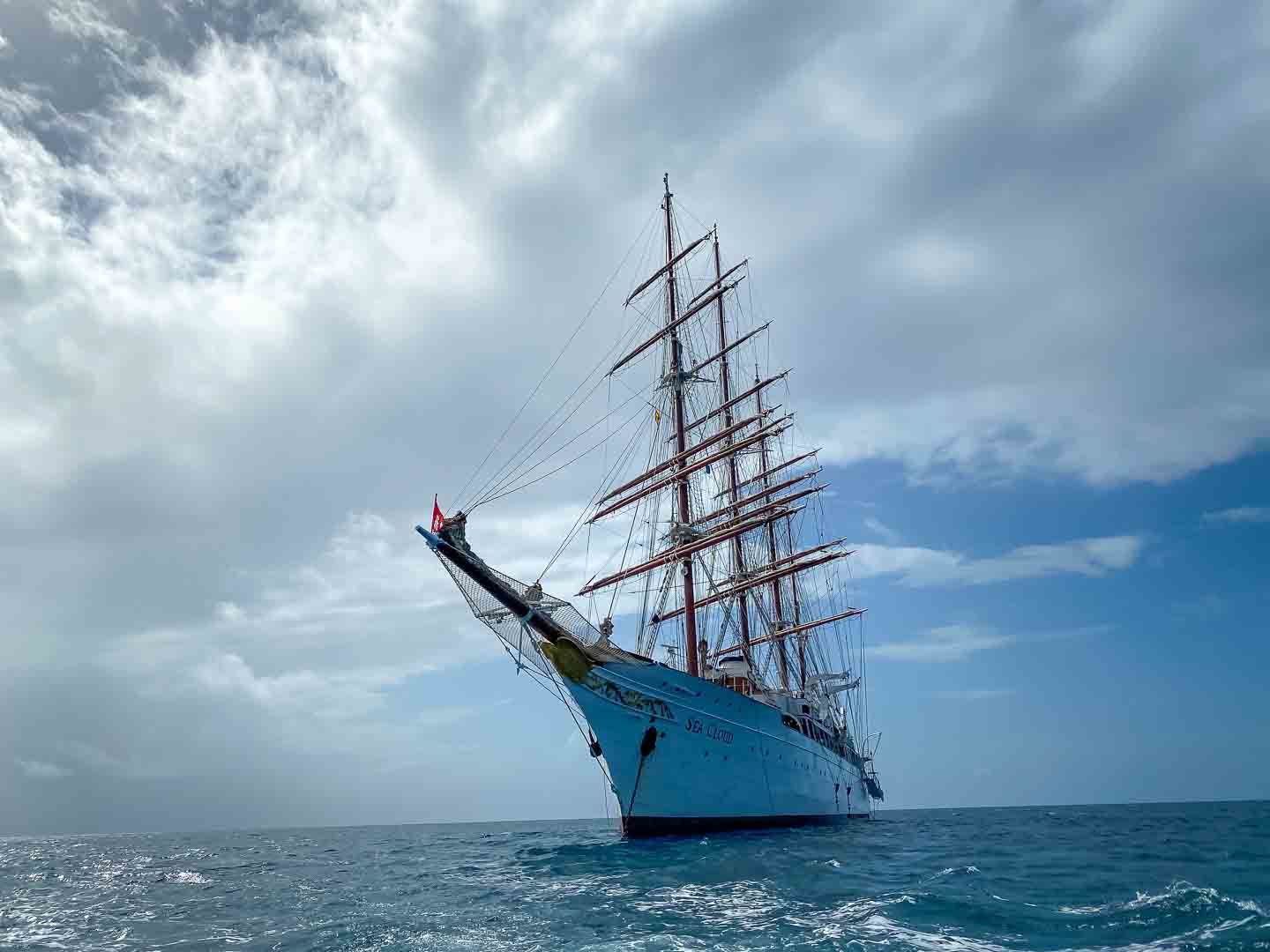 All of our Sea Cloud voyages to the Caribbean have one day dedicated to exploring the islands of the Grenadines. Unlike most of the mountainous and volcanic Windward Islands, the Grenadines are uplifted limestone and fossil coral islands of white sand beaches, coral reefs, and coconut palms. Some of the islands are part of the country of St. Vincent and the Grenadines, and others are part of the country of Grenada. Today we opted to explore the island of Carriacou—though it is part of Grenada, it has quite an independent history and culture. After an exciting morning sailing, we spent the afternoon snorkeling, swimming, or walking the town before returning to Sea Cloud for an incomparable gala dinner.