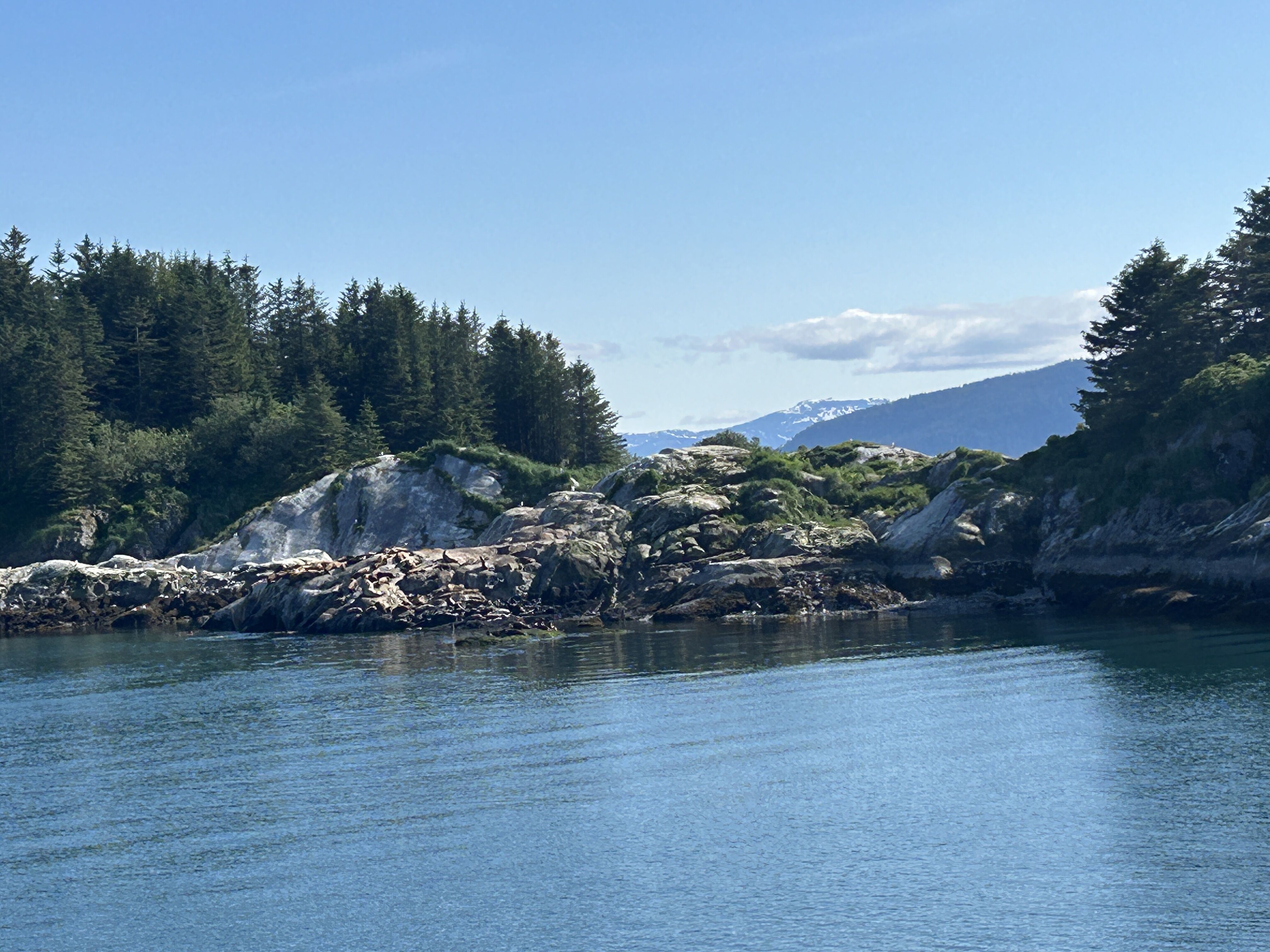The afternoon navigation north was highly productive. We went from a lob tailing humpback whale calf with its mother, to a group of four humpback whales doing synchronized diving, to another group of three whales doing a series of short dives. Through the website of HappyWhale.com, we had positive identifications of all the whales we found. Some were known migrators to Hawaii and others were documented migrators to Baja California and slightly south. It was a warm sunny day in Southeast Alaska filled with forest exploration, waterfall admiration, kayaking, and feeding whales. It was an awesome day.