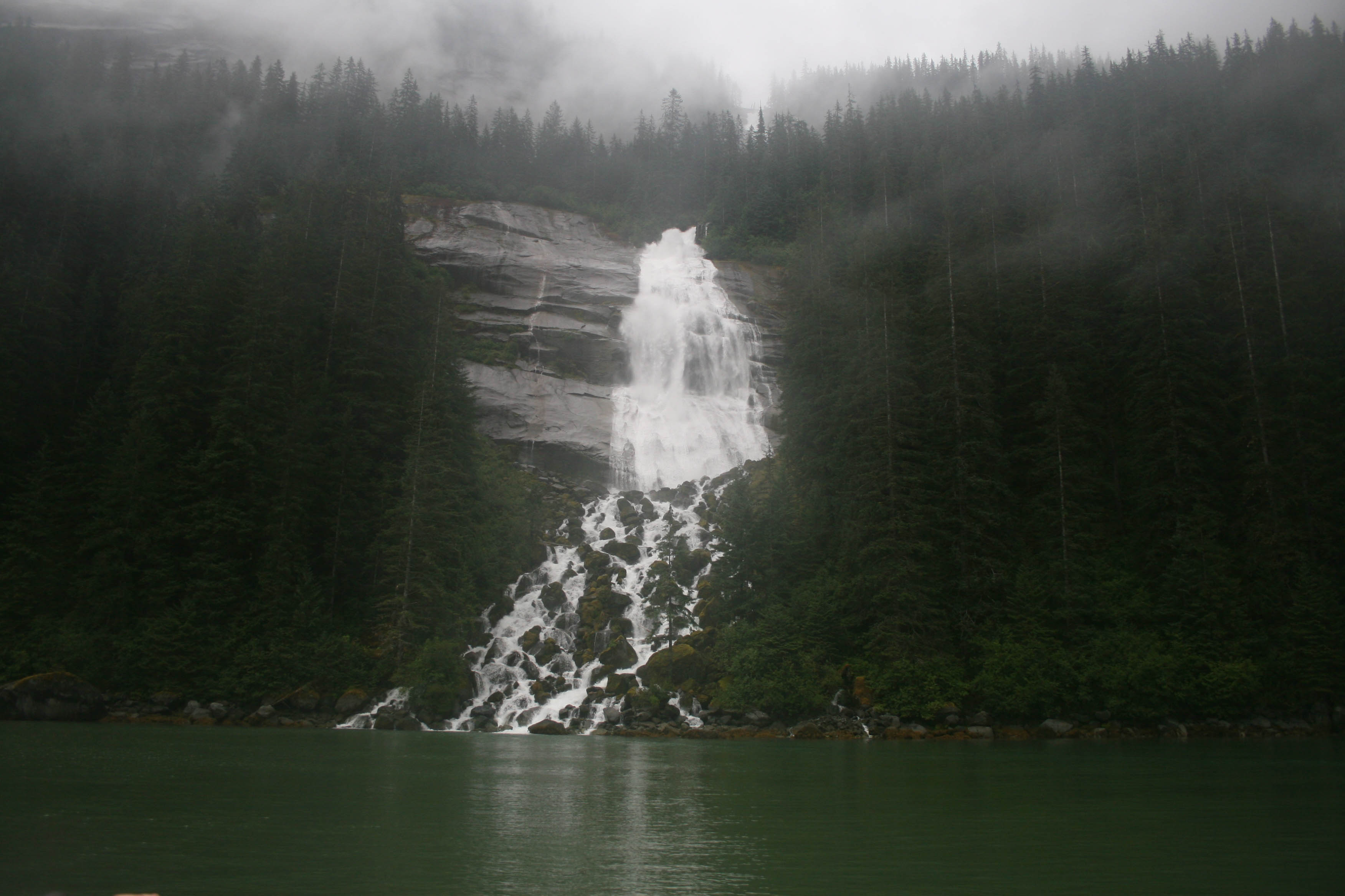 Shortly after dawn, National Geographic Sea Lion glided into the aptly named Scenery Cove, where guests and naturalists alike enjoyed the forest vistas and birds flying over the water. We then headed to our main destination of the morning: Cascade Creek, which is a roaring, whitewater stream that spills from the mainland into Thomas Bay. Groups of hikers were led by naturalists along the creek, through a lush rainforest. Our young guests joined naturalist Jeff for a kids-only hike. On some steeper sections of the hiking trail, we climbed steps which are carved out of the bedrock. We admired the wide waterfall on the creek and followed the trail until it was time to turn around and return to the ship. The fun continued for our young explorers after the hike: they each got to try their hand at driving an expedition landing craft.