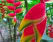 A highlight of the hike was the “finds” from our local scouts. We had three extra assistants along. These men, with their machetes in hand, went off the trails and came back to show us some of the more hidden inhabitants of the forest. A four-foot long anaconda was one of the first critters we got to admire and photograph. Then we saw a tarantula, a tree frog, leaf frogs, and eventually the bright colored poison dart frogs of red, black-and-blue, and blue-and-yellow—each of them smaller than the size of a thumbnail and brightly advertising their toxicity! A final surprise was the rainbow boa that was wrapped around the arm of our scout. It was not out for a meal, just hanging on.