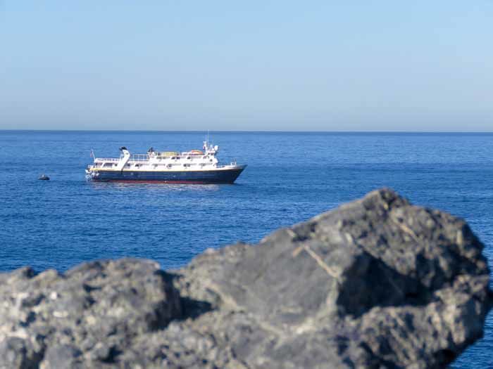 Last night, after much deliberation by the captain and expedition leader, our ship returned to the Port of Los Angeles to avoid high seas and winds. We made the most of our day in the city by taking advantage of well-crafted excursion. In the morning, many guests enjoyed the Aquarium of the Pacific, while others toured the USS Iowa, and others went for hikes and tidepool adventures near the bluffs of Palos Verde. The highlight of the tidepool adventure was finding an octopus under a rock! We all returned to National Geographic Quest for a very informative presentation by National Geographic Expert in Geology, Kirt Kempter. After lunch, we had another round of options, with a majority of guests visiting the beautiful Huntington Gardens, others learning about the last 45,000 years of fossils found in the La Brea Tar Pits, and plenty of others choosing to hike a challenging trail in Palos Verde. Spirits were high when we set sail towards the Northern Channel Islands after dinner, and all were looking forward to a presentation from Tim Hatler.