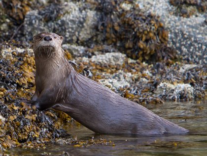 This morning the National Geographic Sea Lion continued its journey north through narrowing passages of steep glaciated walls and verdant forests. After breakfast we passed the village of Klemtu, a small village on Swindle Island situated on the beautiful Central Coast of B.C. Two distinct tribal organizations live here: the Kitasoo (Tsimshian) and the Xaixais of Kynoc Inlet. Passing by the Big House we passed the heart of town (of less than 500) and were impressed by both the ferry terminal, hydro facility, and nearby Boat Bluff Lighthouse.