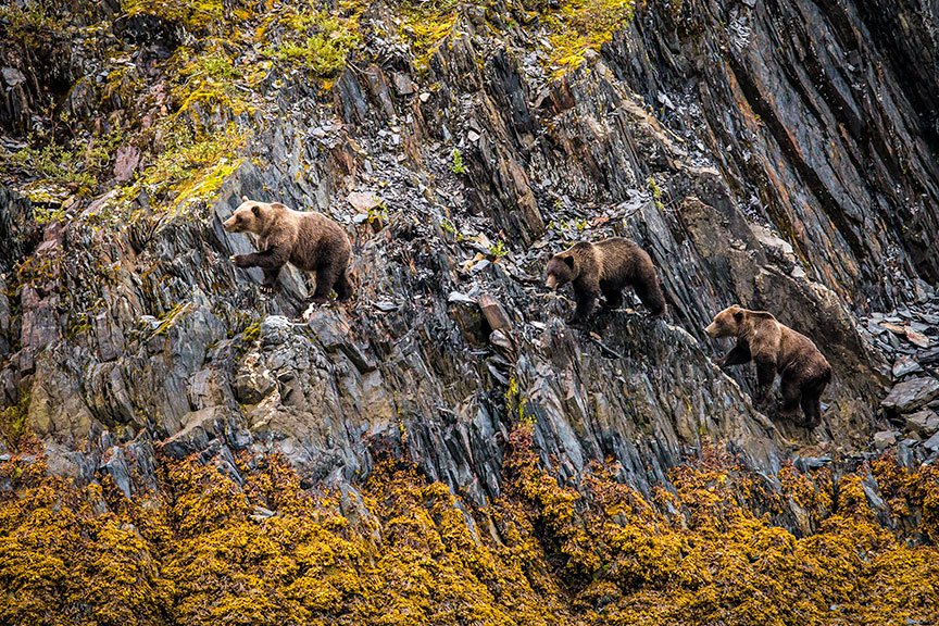 The National Geographic Sea Lion was met by an extremely low tide as it cruised into Pavlov Harbor. Being late August, the last of the pink salmon were making their way back upstream into their freshwater habitats to lay their eggs. With the presence of salmon, we were hoping to see one of their top predators, bears. Mother Nature was on our side and we saw a beautiful brown bear gracefully catching a salmon feast in the stream.