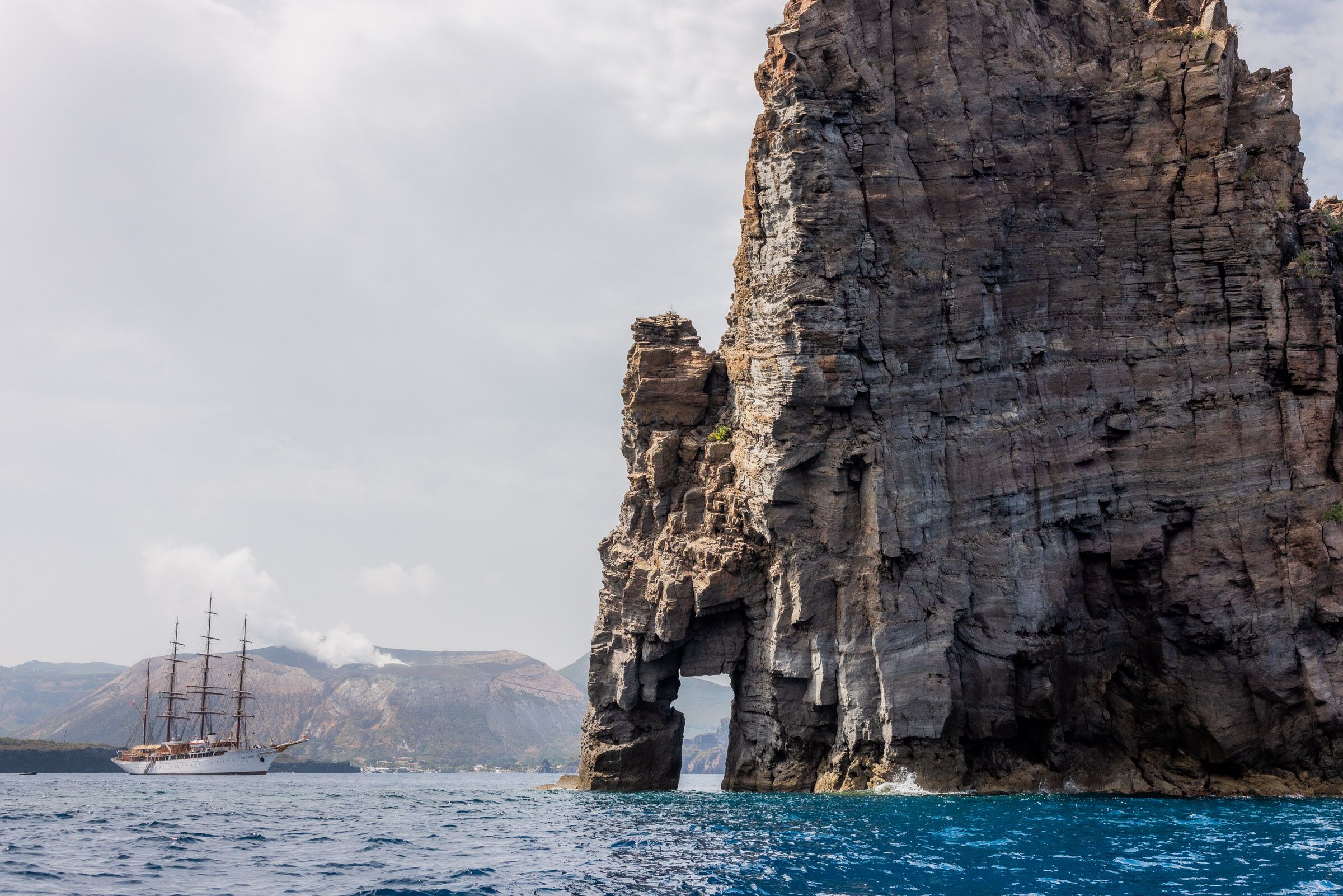 Distant whale spouts broke the horizon as National Geographic Venture made headway towards Kasnyku Falls on the east side of Baranof Island. The ship was making its way southbound down Chatham Strait, but we paused to admire the falls before breakfast. Slowly, guests, staff, and crew made visits to the bow to see the waterfall. It was a rare sunny day in Southeast Alaska, where we usually expect overcast and rain for at least part of the day. However, the sun would shine brightly all day, revealing the craggy snowy peaks that tower over forests of hemlocks and spruces.
