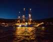 During breakfast we cruised a short distance north and soon found five humpback whales feeding next to shore. They dove in quick succession, and within minutes bubbles appeared on the water in a large ring. The whales erupted through it with mouths open wide. When they dove again, we lowered a hydrophone and heard the eerie, undulating feeding call made by one of the whales. Fish react to the sound by schooling more tightly, and the whales can catch more of them. Just a few dozen humpbacks feed cooperatively using bubblenets in Southeast Alaska, so it was very exciting to see.