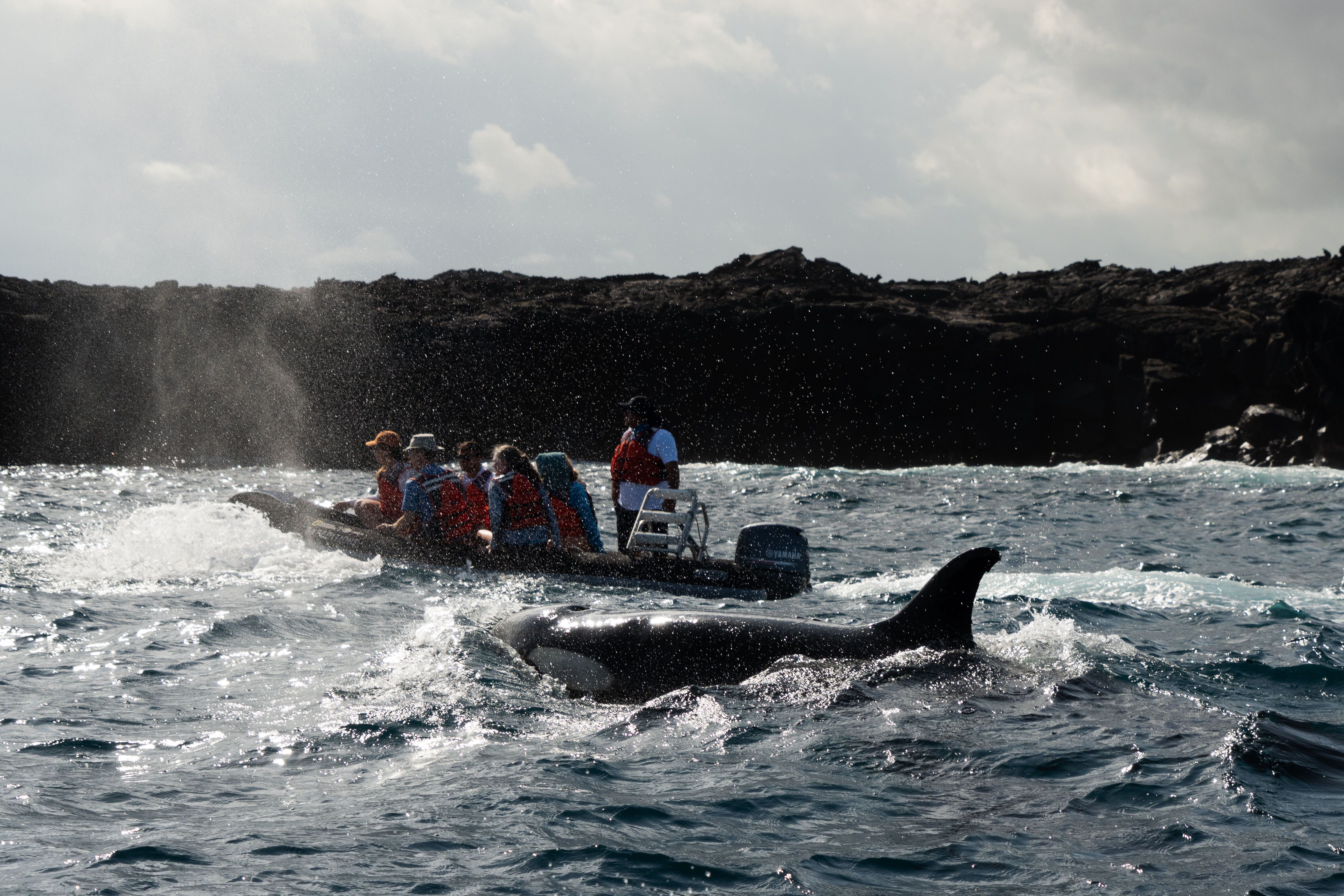 We started our day early in the morning at Chinese Hat. As our kayaks glided in the water, we had our first opportunity to watch Galapagos penguins swimming beside us. As we got closer to the shoreline, lava herons and blue-footed boobies stood motionless on the lava, watching our groups pass. In the late morning, we had the opportunity to have a very intimate moment with Galapagos penguins while they were hunting black-striped salemas. Penguins swam back and forth, trying to get as many fish as possible. The lunar landscape of Chinese Hat gave us an opportunity to observe the candelabra cactuses that grow on this recently formed lava field. In the afternoon, our expedition took us to Sullivan Bay. During a hike, we enjoyed one of the most amazing lava landscapes in the Galapagos. The visitor site invited us to think deeply about the genesis of life in the Galapagos Islands and how plants and animals arrived and established themselves here. As we returned to the ship, a beautiful sunset invited us to reflect on the geological and geographic qualities that make the Galapagos truly unique.