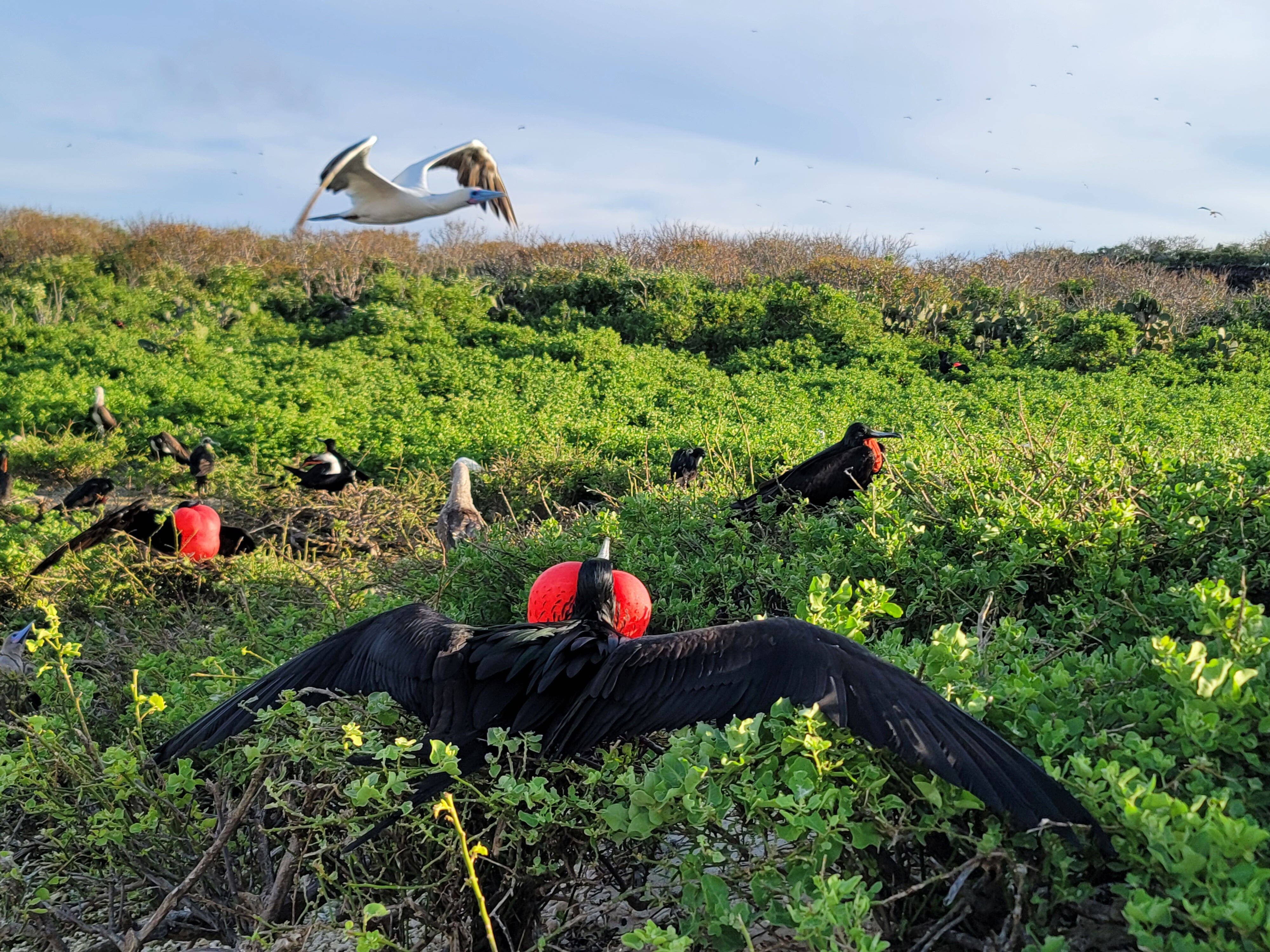 We are ready to set out early to explore the small and picturesque island of South Plaza. Here we find the endemic Galapagos land iguana, their reptilian features and colors stand out against the lava rocks and cactus forest. Swallow-tailed gulls nest right on and alongside the trail. Sea lions play in the water or rest under the bushes. On Santa Fe Island, we continue our excursions, this time with aquatic activities such as kayaking and snorkeling in the shallow turquoise waters of Santa Fe Bay. Sea lions, turtles, large schools of various fish, and rays are found. Later we explored by land to see the island’s land iguanas, finches, doves, and mockingbirds.