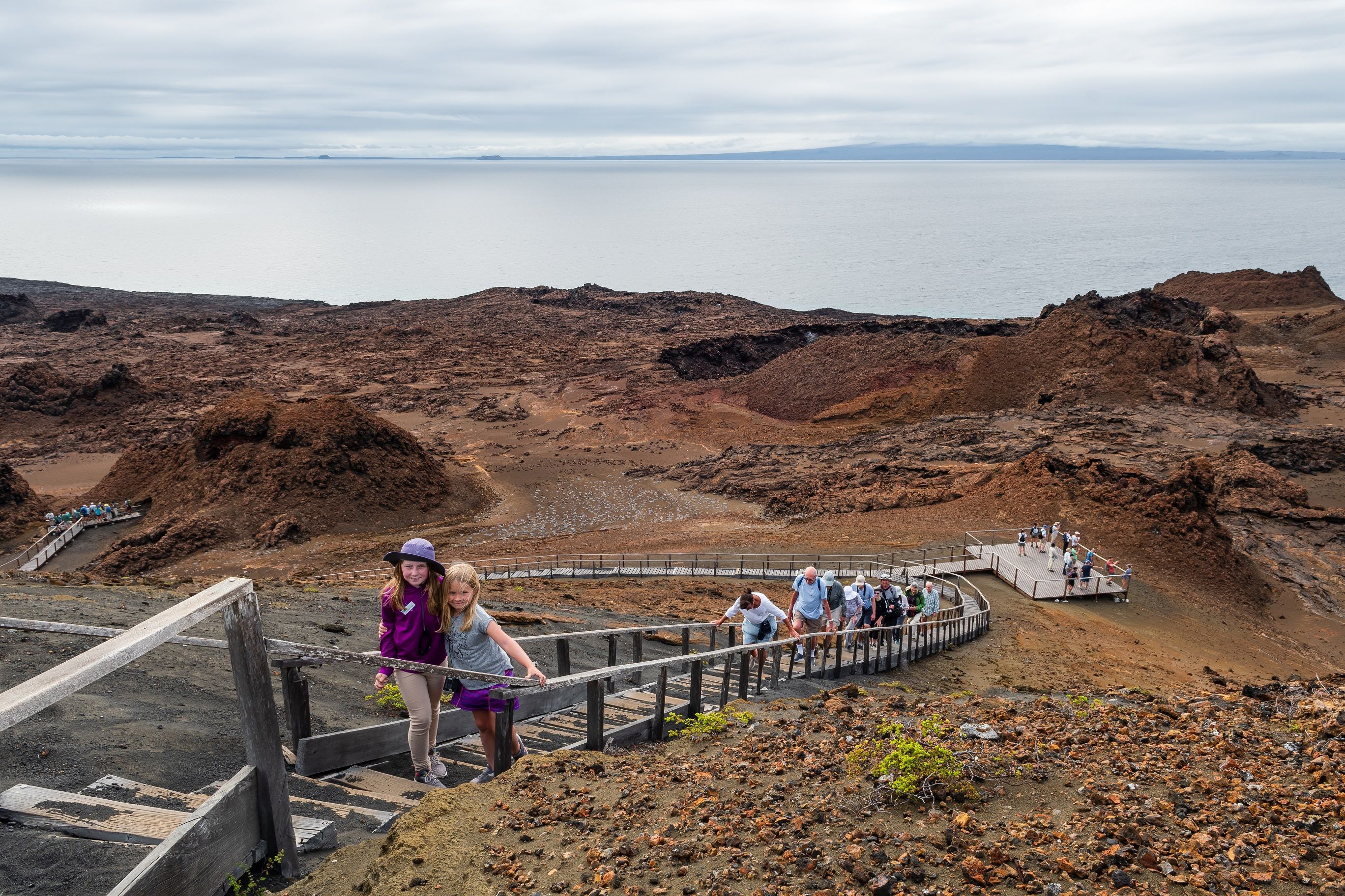 Today we got a chance to explore two different places in the central region of the Galapagos Islands. In the morning, we went to Chinese Hat Islet; there we looked for wildlife from the Zodiacs, kayaking and later, snorkeling. We also had the chance to go to a small white sandy beach and enjoyed the company of a couple of juveniles Galapagos sea lions and many Sally light-foot crabs.