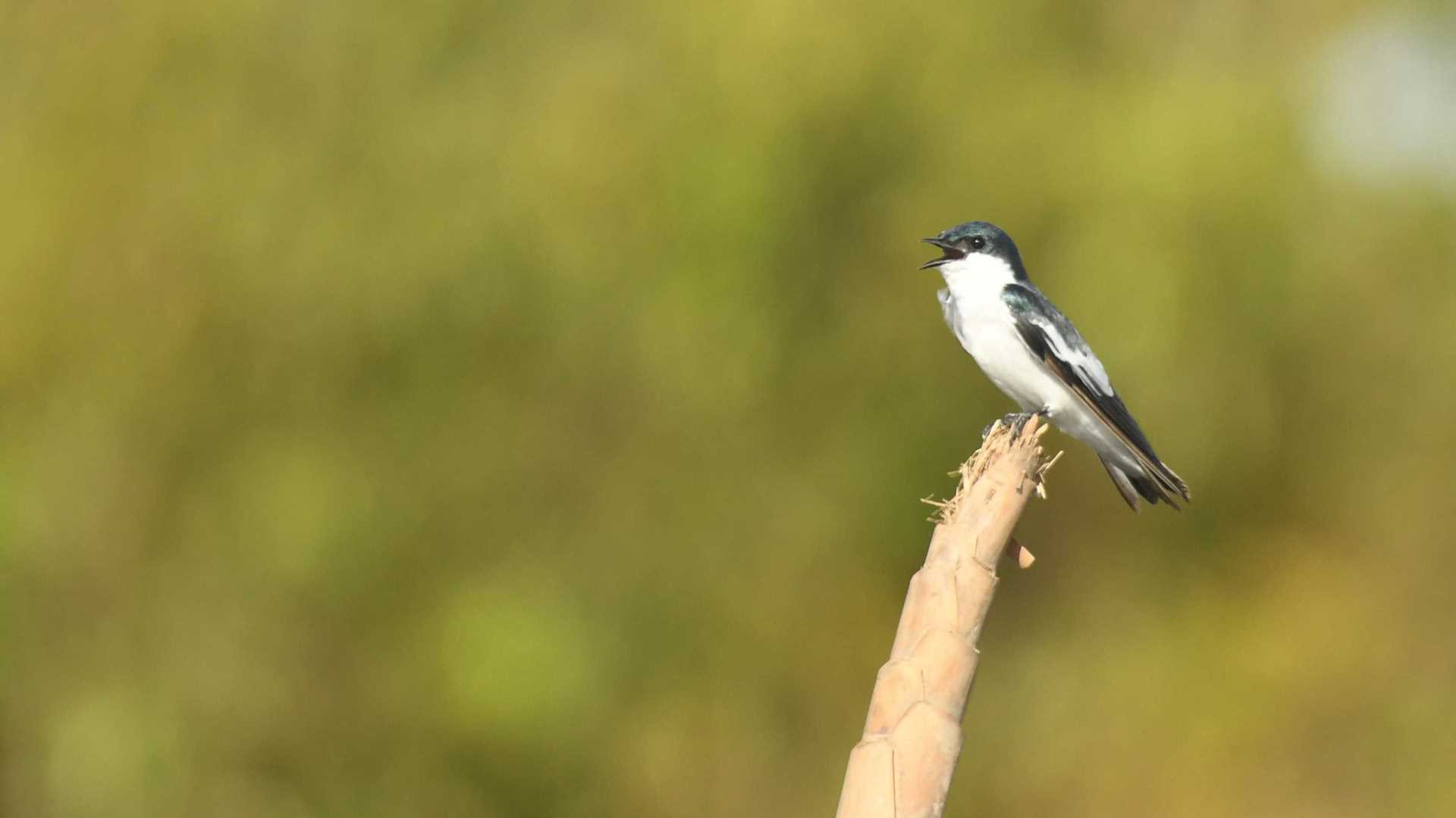 This is our first full day of exploration along the Pacaya-Samiria Reserve, a vast area protected by the government of Peru. The area is bordered by the Ucayali, the Marañon and Amazon rivers. We woke up early in the morning to explore Clavero Lake, and the first encounter was with a school of pink dolphins just at the entrance of the lake. This large lake has a lot of wildlife, but it also hosts a village, where residents lead an interesting lifestyle, so different from life in the big cities around the world. We took our skiffs into s creek, finding many kinds of land birds of all sizes and colors, including hawks, kites, tanagers, flycatchers, and more. The highlight was a blue-throated cotinga, a small bird with very bright blue color all around its body. The blue is so vibrant that it can be seen from a far distance.