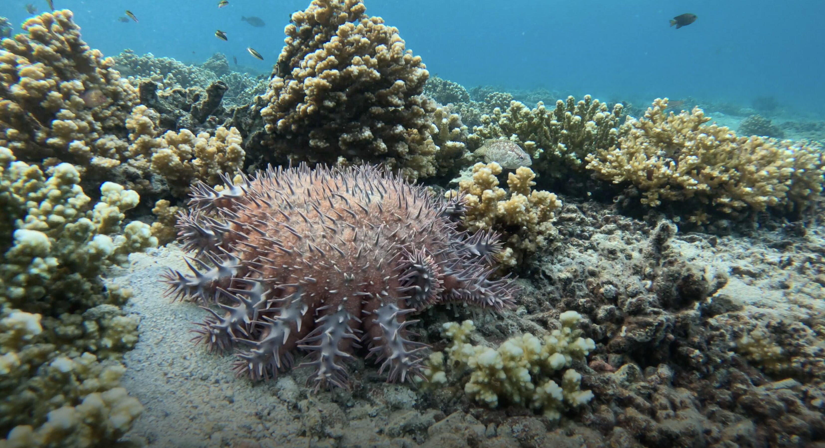 We spotted a whitetip reef shark under a brain coral, and we enjoyed observing a green pufferfish and several soldierfish. We also found a crown of thorns, a starfish that feeds on hard or stony coral polyps. They are considered among the largest starfish in the world.