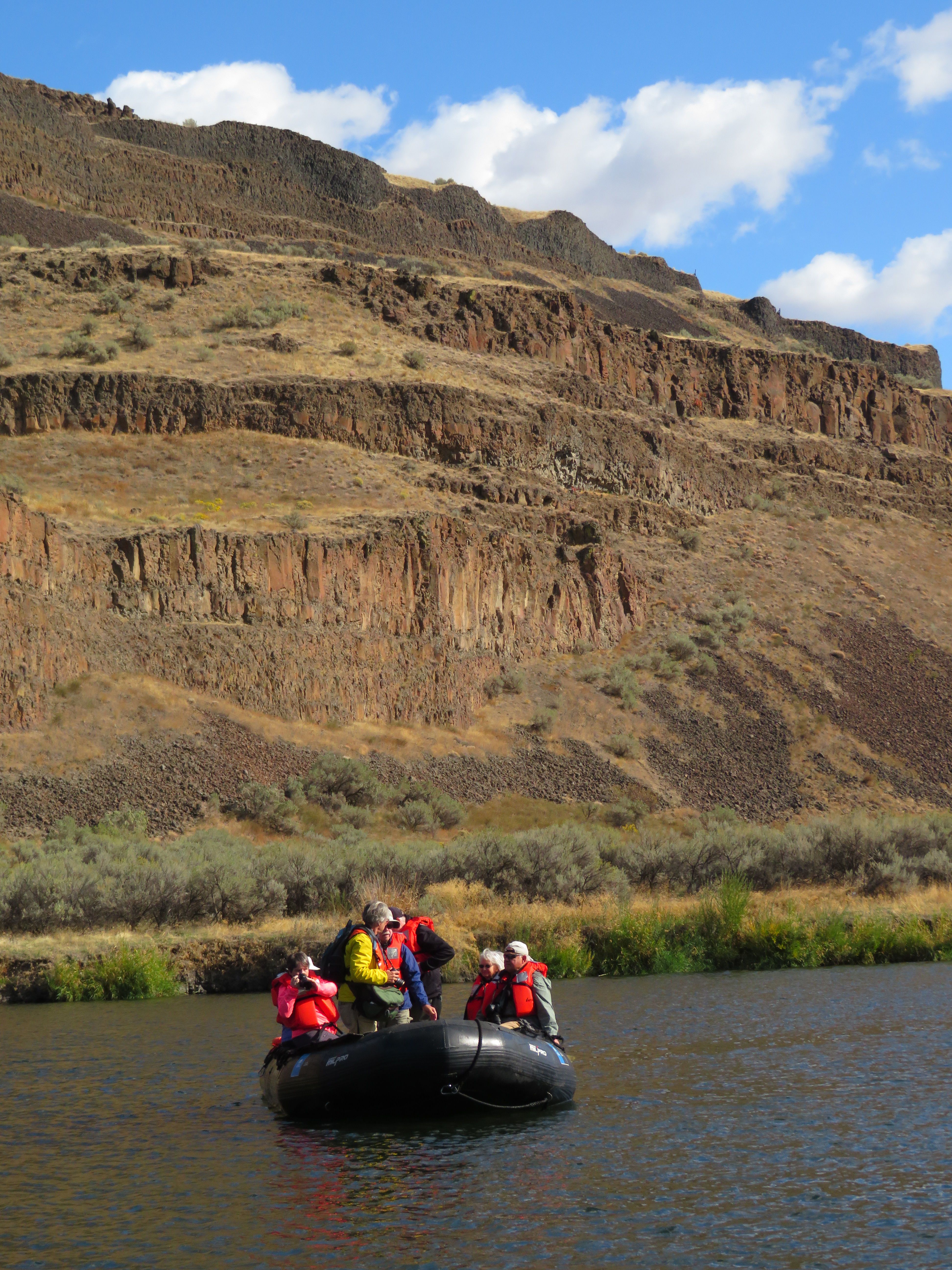 During the night we navigated from the Snake River and turned south onto the Columbia River. This morning we woke in front of McNary Lock and Dam. McNary is the fifth lock of our trip, after having traversed four along the Snake River. It is also our first lock on the Columbia River as we continue our navigation westward. We are still in the rain shadow of the Cascade Mountains and the defining desert-steppe vegetation. This afternoon we had a chance for a short stroll at Crow Butte County Park to get a closer look at the classic vegetation, sagebrush and other western plant species. We closed our day with a sampling of the local wines from Washington and Oregon vineyards. A flavorful way to end another day navigating the great river of the west.