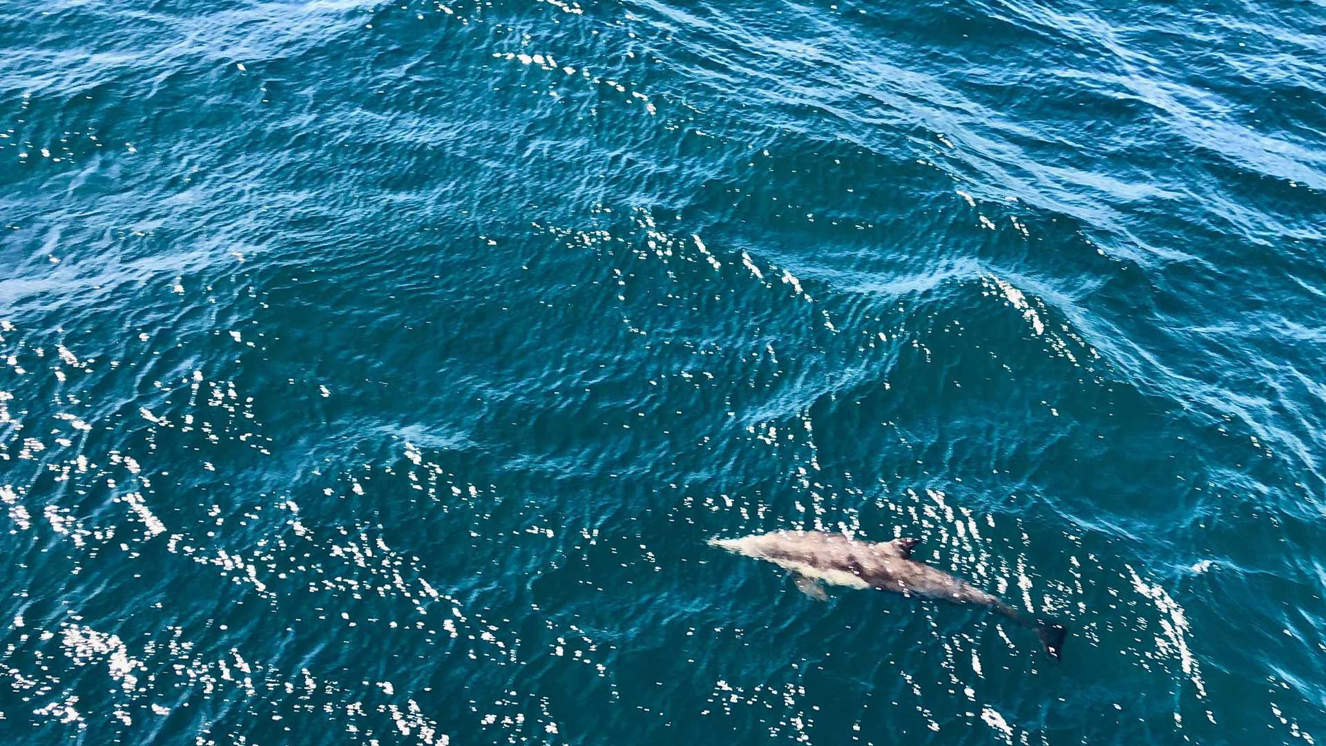 What a start to our Baja voyage! We woke up to a beautiful sunrise as we cruised north through the area of Bahia de Loreto National Park. Shortly after breakfast, though, our kayak and snorkel briefings were interrupted by a chaotic feeding frenzy. Initiated by a large school of fish, long beaked common dolphins porpoised through the water as they chased after their prey; pelicans dove straight into the waves and surfaced seconds later with their catch; gulls dipped their beaks in the water and came up with a mouthful of fish; and frigate birds soared high above taking every chance they could get to steal food from their fellow hunters. It was madness in the best possible way.