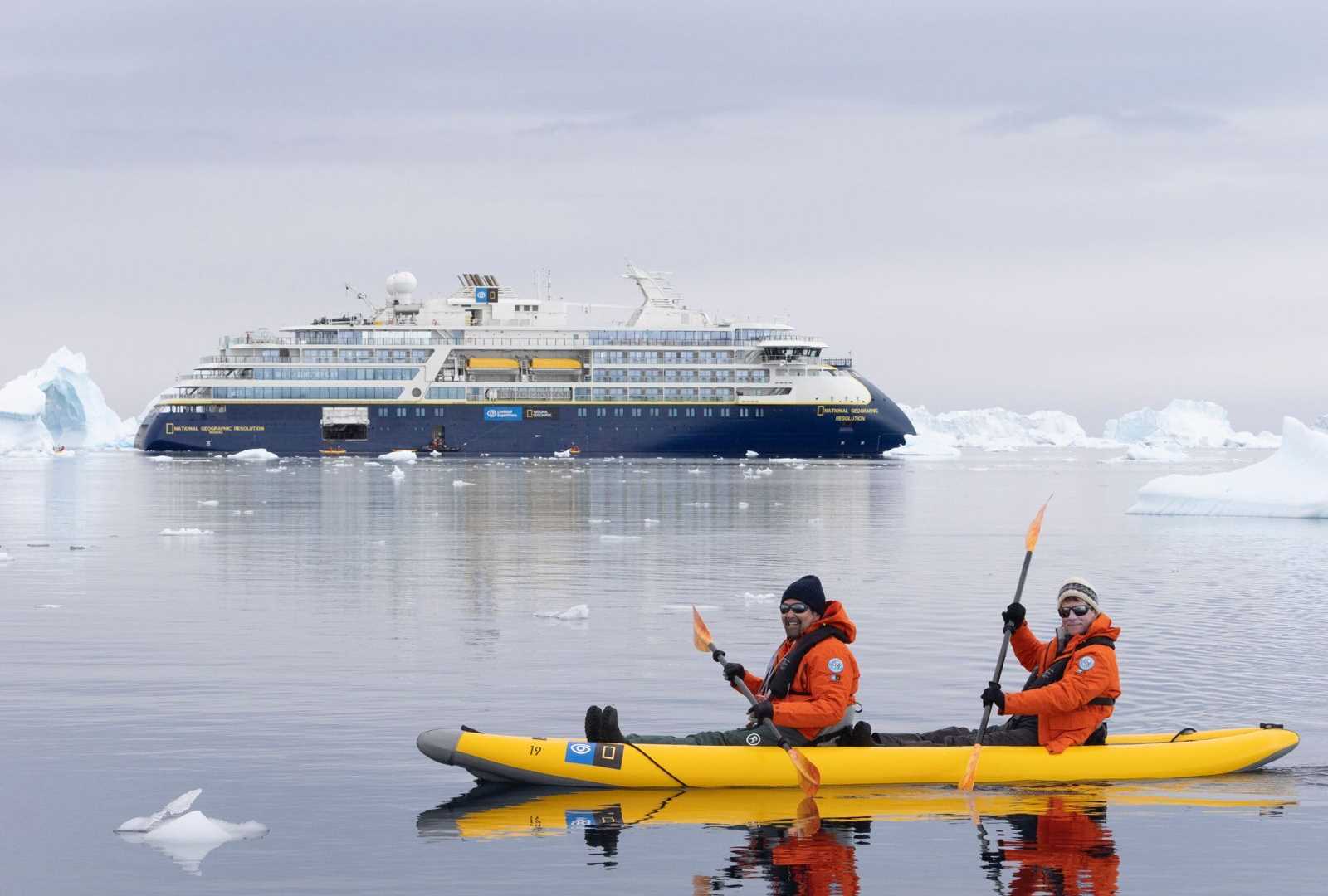 Charging our way north after going as far south as National Geographic Resolution has ever gone south of the Antarctic Circle, we spent an early morning in Crystal Sound in Skog Bay. The bay is named after the prolific explorer, inventor, and designer of National Geographic Endeavour and National Geographic Resolution, Captain Leif Skog.
