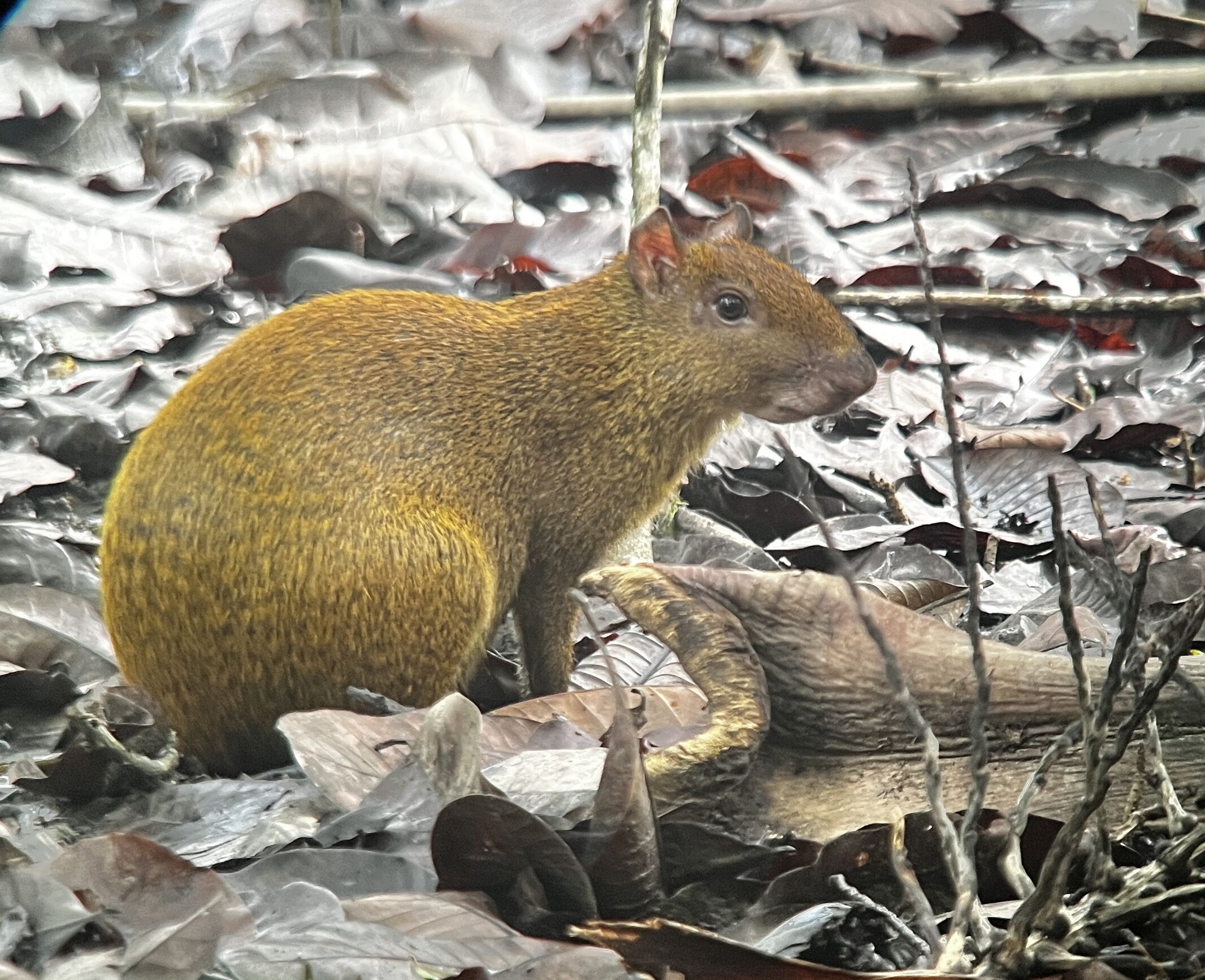 Our morning destination was Costa Rica’s first private refuge for wildlife, and the results of the area’s protections were apparent. Hikers ended up surrounded by calm white-faced capuchin monkeys (Cebus capucinus) foraging in the leaf litter, mantled howler monkey (Alouatta palliata) babies learning how to climb without help, Central American agoutis (Desyprocta punctata) chasing each other on the forest floor, and many other impressive animal encounters.