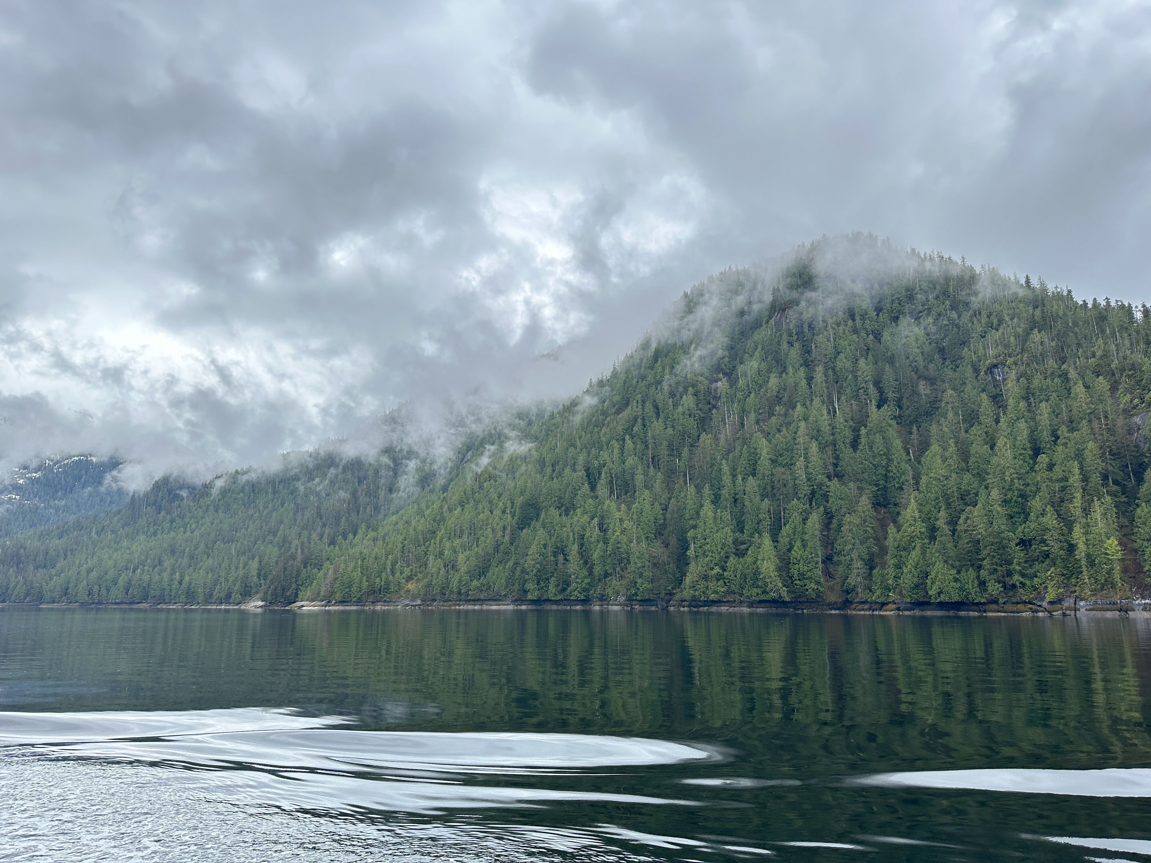 Early this morning, National Geographic Sea Lion cruised on a slow bell into Skidegate Inlet on her way to Daajing Giids, one of the larger population centers of Haida Gwaii.