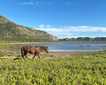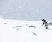 The staff made a trail to visit a Gentoo penguin colony on a nearby hill. Penguins gathered and mated, a few laying eggs. Gentoo penguins have black heads with white bonnets and prominent brush tails.