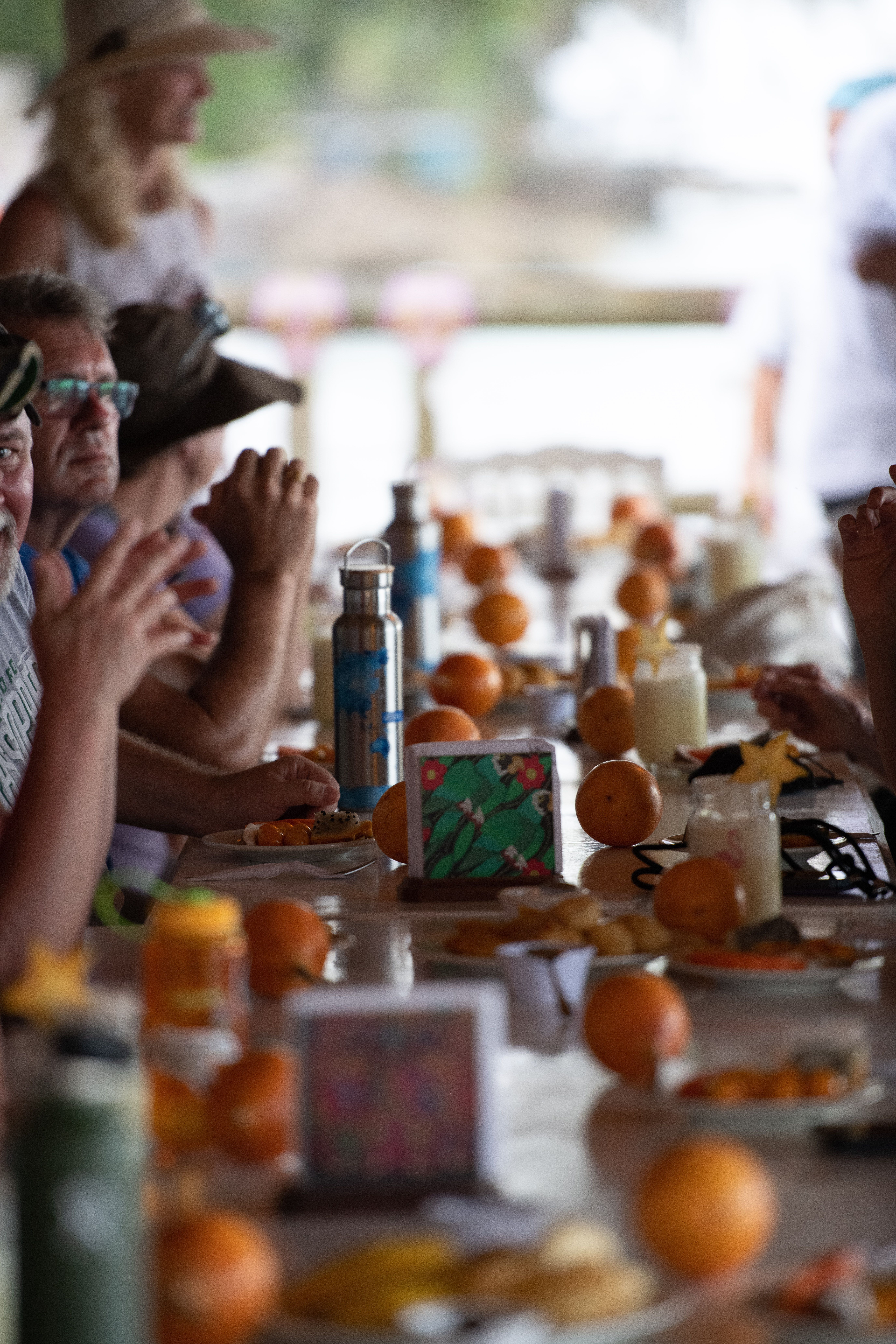 Our next stop was a place called Etienne, where we hoped to enjoy a Zodiac cruise. As we approached the area, we were surprised to come up against a thick layer of broken ice. The ice was no match for National Geographic Resolution, and the ship glided through like it was nothing; however, our hopes for a Zodiac cruise looked bleak. We traveled farther into the ice, and most guests took to the decks to enjoy the incredible atmosphere created by the surrounding and thickening ice. Upon reaching Etienne, it looked like all hope was lost for the cruise. The ice was broken but extremely thick and slushy, which would make it hard for the Zodiacs to operate. We enjoyed the beautiful scenery of the glaciers around us. However, some of us noticed that Expedition Leader Andy Wolff had gathered his staff on the bridge, and it looked like they were cooking up a plan. Shortly after, Andy announced that a different sort of Zodiac cruise would occur. The snow and ice were too thick for the Zodiacs, but National Geographic Resolution could pass through easily and leave behind a trail of open water for a few moments before the ice closed again. Andy offered us an opportunity to board the Zodiacs and ride in the wake of National Geographic Resolution! We would race behind the ship as the displaced ice closed in behind us. If we were too slow, we would get stuck in the slushy new ice. We thought this sounded like great fun, so we loaded up into our Zodiacs and our drivers prepared for the run. Once all were boarded, the ship started to pull forward and the race against the ice was on. We followed behind the ship at a reasonable pace to see the ice and snow building up around us, but we traveled quickly enough to keep from getting trapped. The Zodiac drivers were enjoying it just as much as we were. They weaved in and out of stray pieces of ice, chasing the ship with much excitement. The snow started falling heavier, and we could see it thickening on top of the ice and all over our Zodiacs. Some of the Zodiacs started gaining new features, such as “bow box snowmen,” and we can’t be sure who threw the first snowball, but pretty soon, small skirmishes broke out amongst the convoy. After about an hour, it was time to rejoin the ship. The ship stopped and blew away the ice with the azipods to allow us to come alongside and disembark our Zodiacs. We were just in time for a wonderful dinner, and we were still buzzing from our experience.