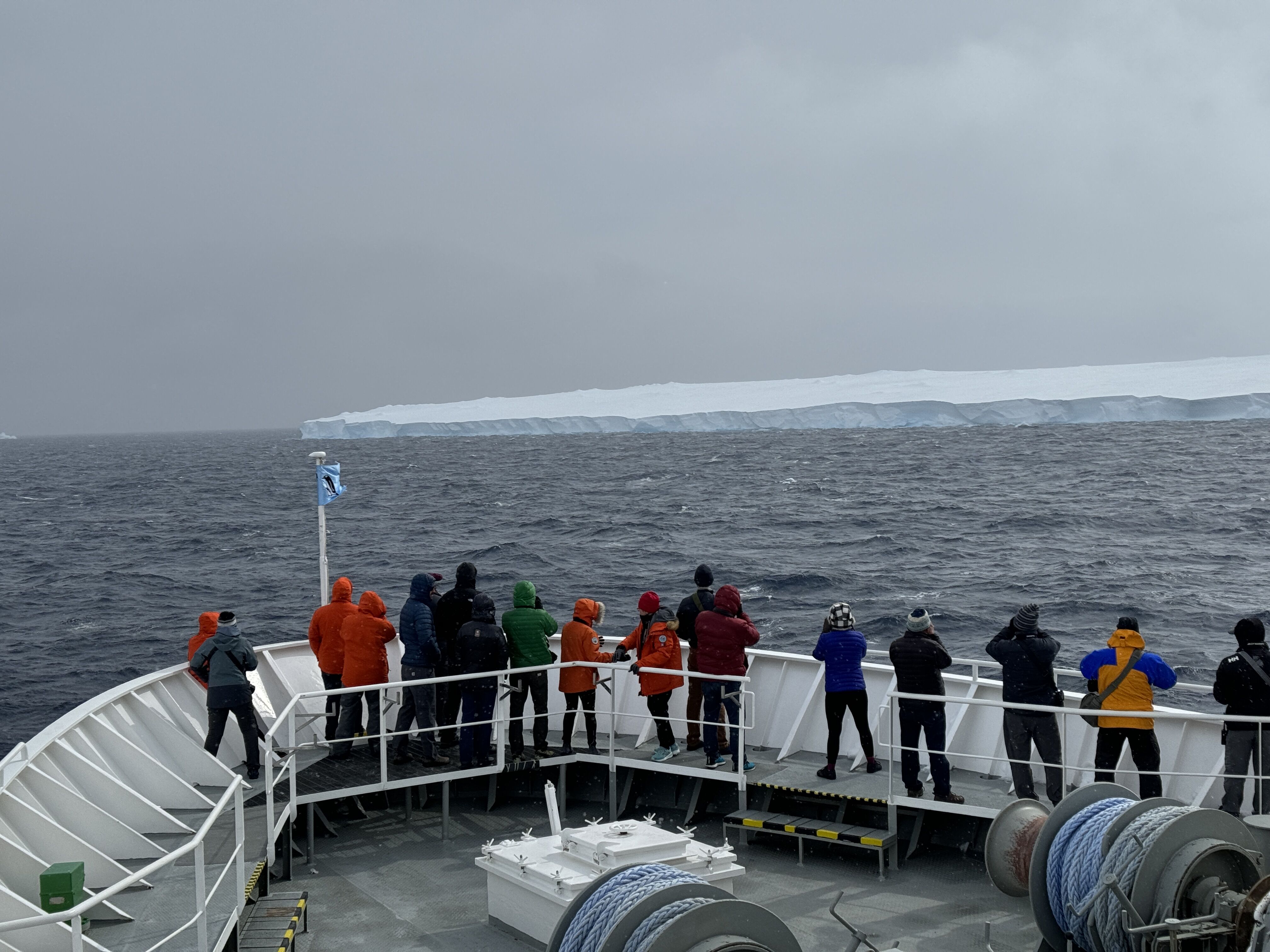 The Falklands, South Georgia, and South Orkney were now behind us, and we had this day at sea to sift through the several thousand pictures we took in each of those destinations. However, at recap last night there was a surprise announcement that we would be attempting a stop at A23A — the largest iceberg in the world. Guests and staff alike shared in the excitement!