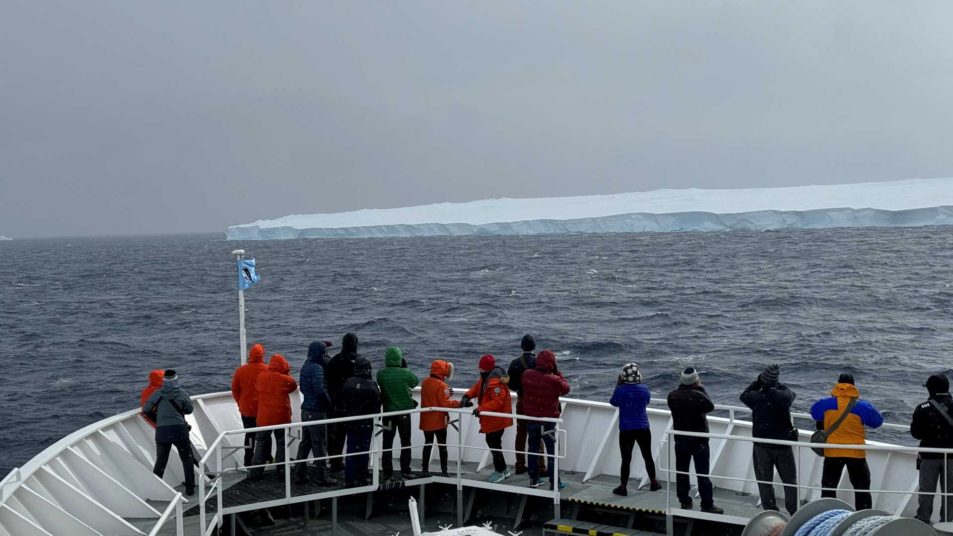 The Falklands, South Georgia, and South Orkney were now behind us, and we had this day at sea to sift through the several thousand pictures we took in each of those destinations. However, at recap last night there was a surprise announcement that we would be attempting a stop at A23A — the largest iceberg in the world. Guests and staff alike shared in the excitement!