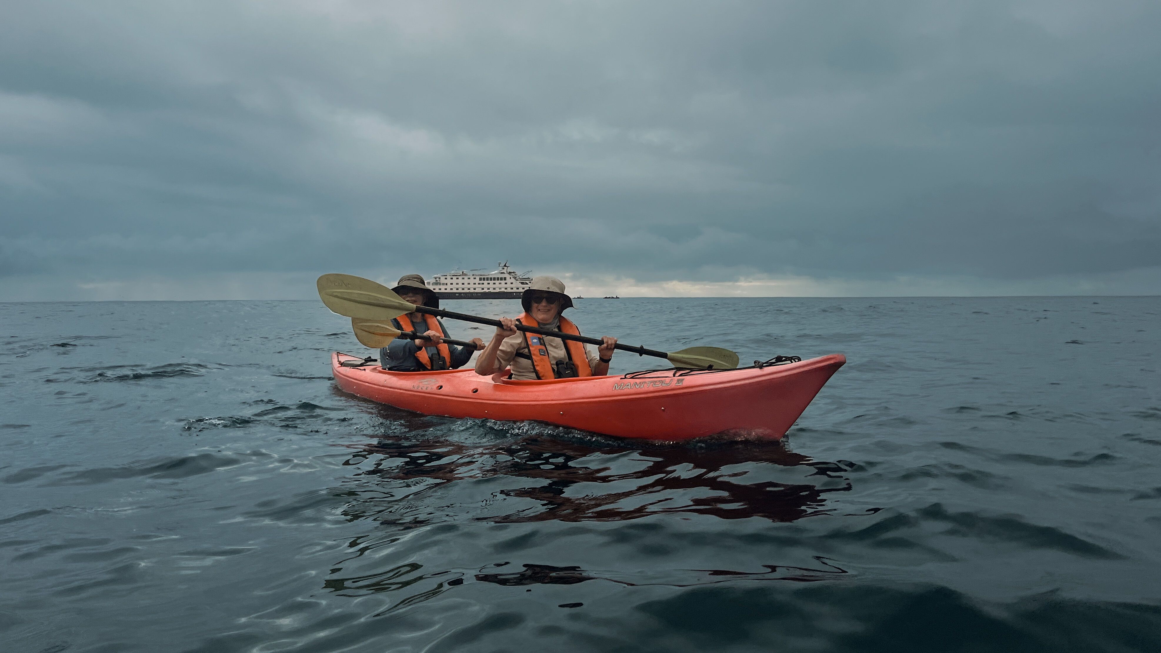 The evening was capped off with a brilliant sunset off the ship’s stern, which sent rays through the windows of the Ice Lounge as the captain welcomed guests aboard at a cocktail party. Today was a wonderful way to ease into an exciting expedition.